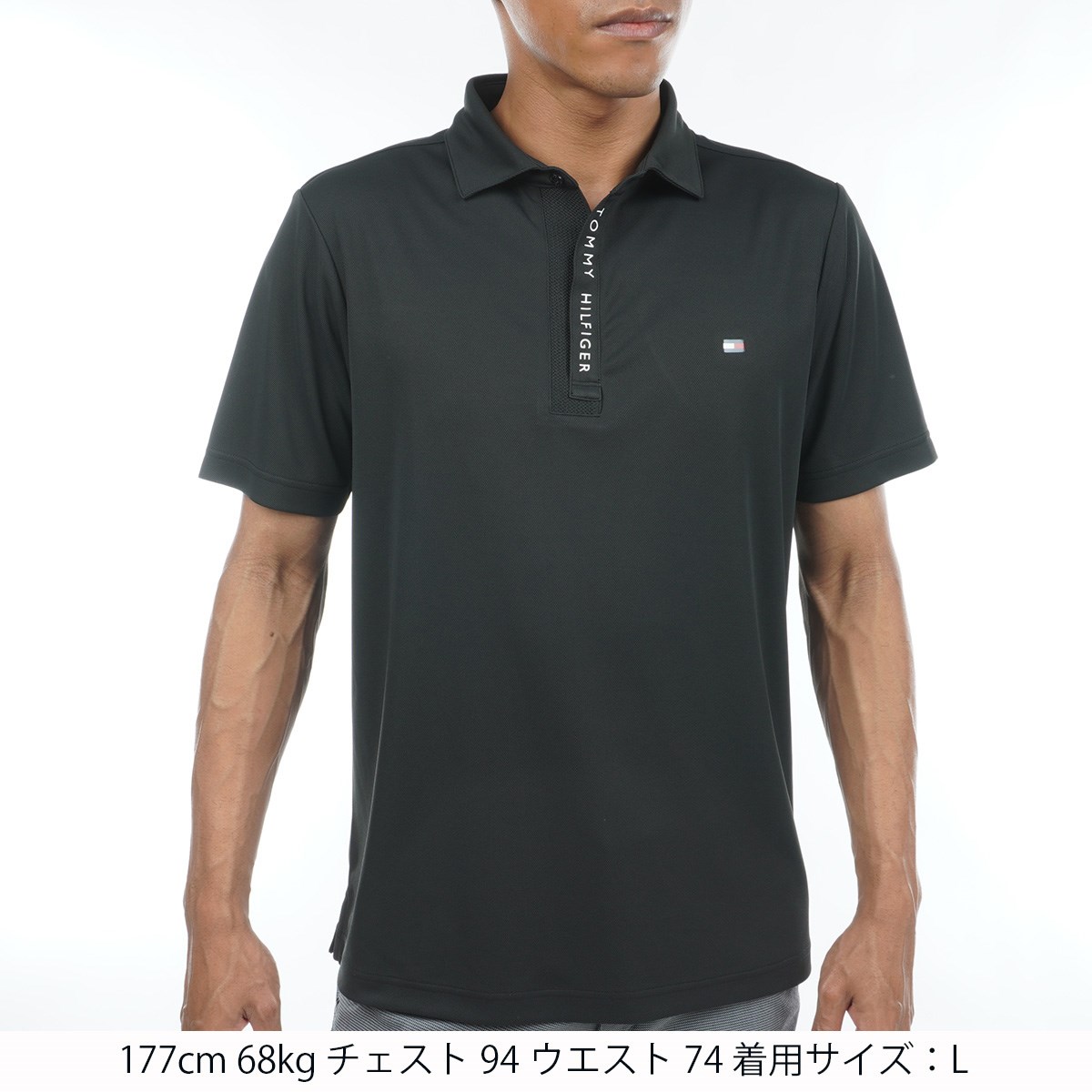 トミー ヒルフィガー ゴルフ TOMMY HILFIGER GOLF 前立ロゴ 台衿付きストレッチ半袖ポロシャツ XL ブラック 10