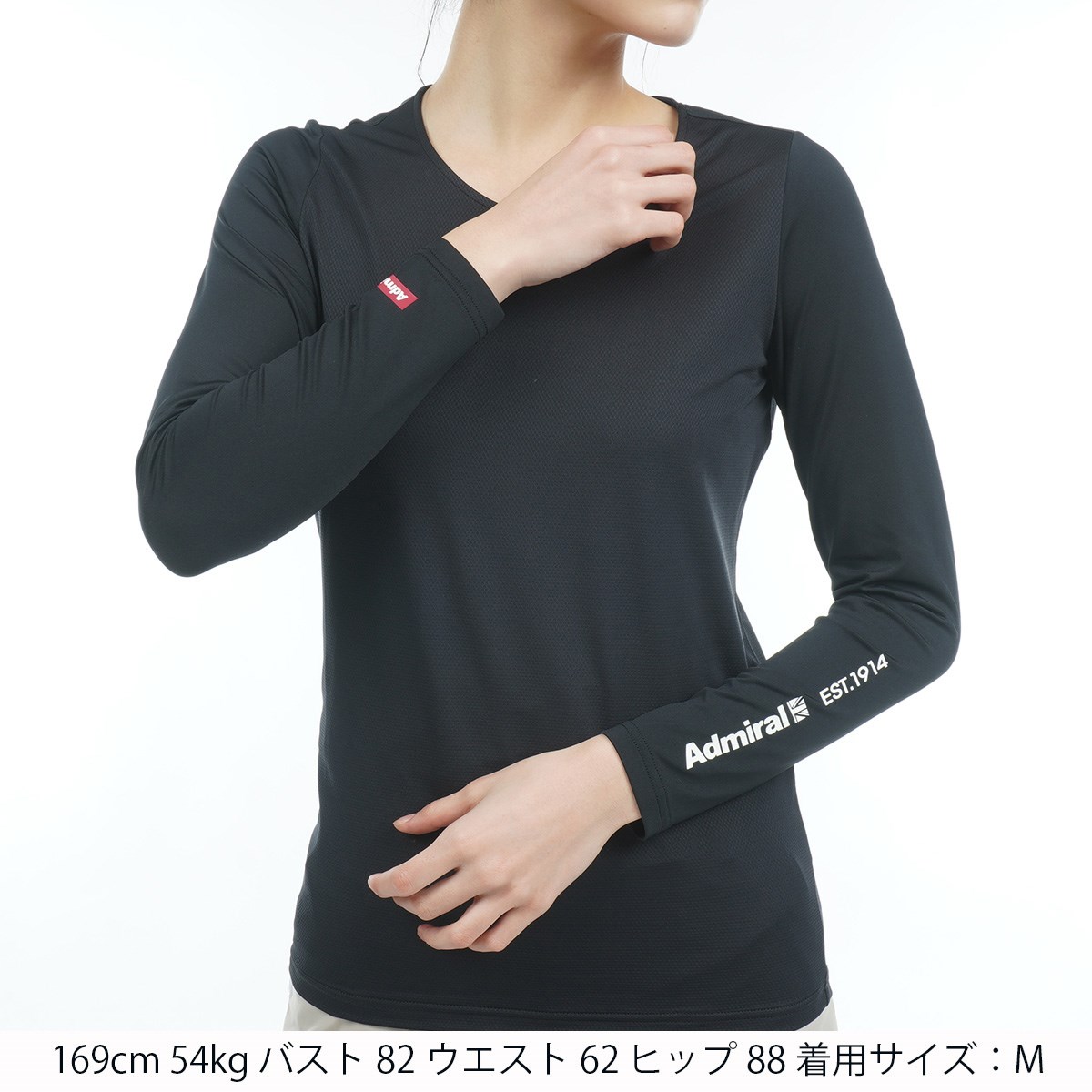 アドミラル Admiral ストレッチ Uネック長袖インナーシャツ S ブラック レディス