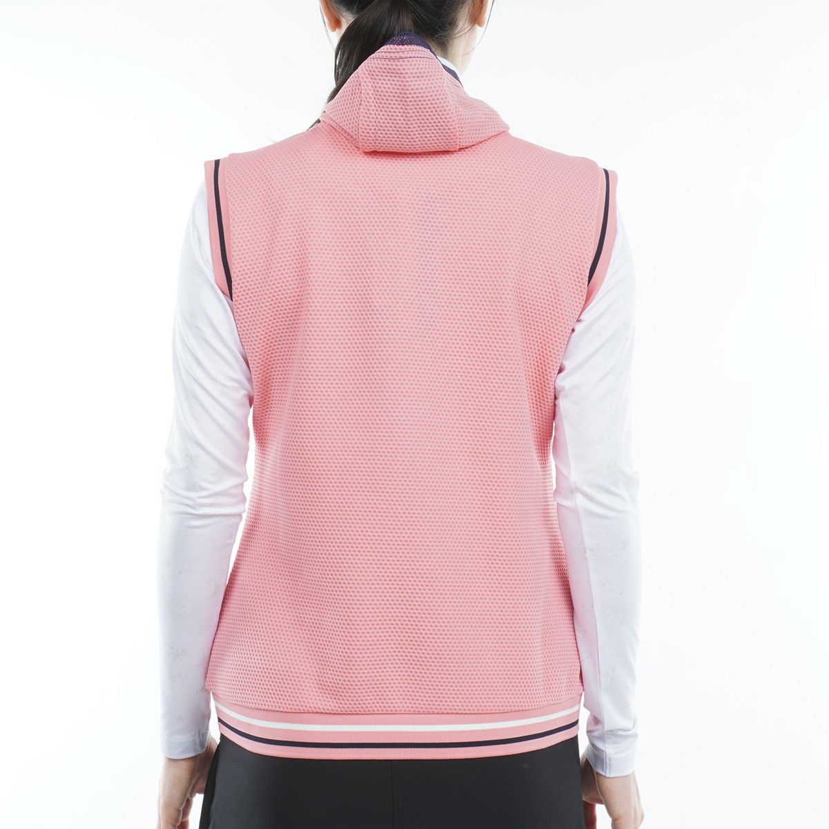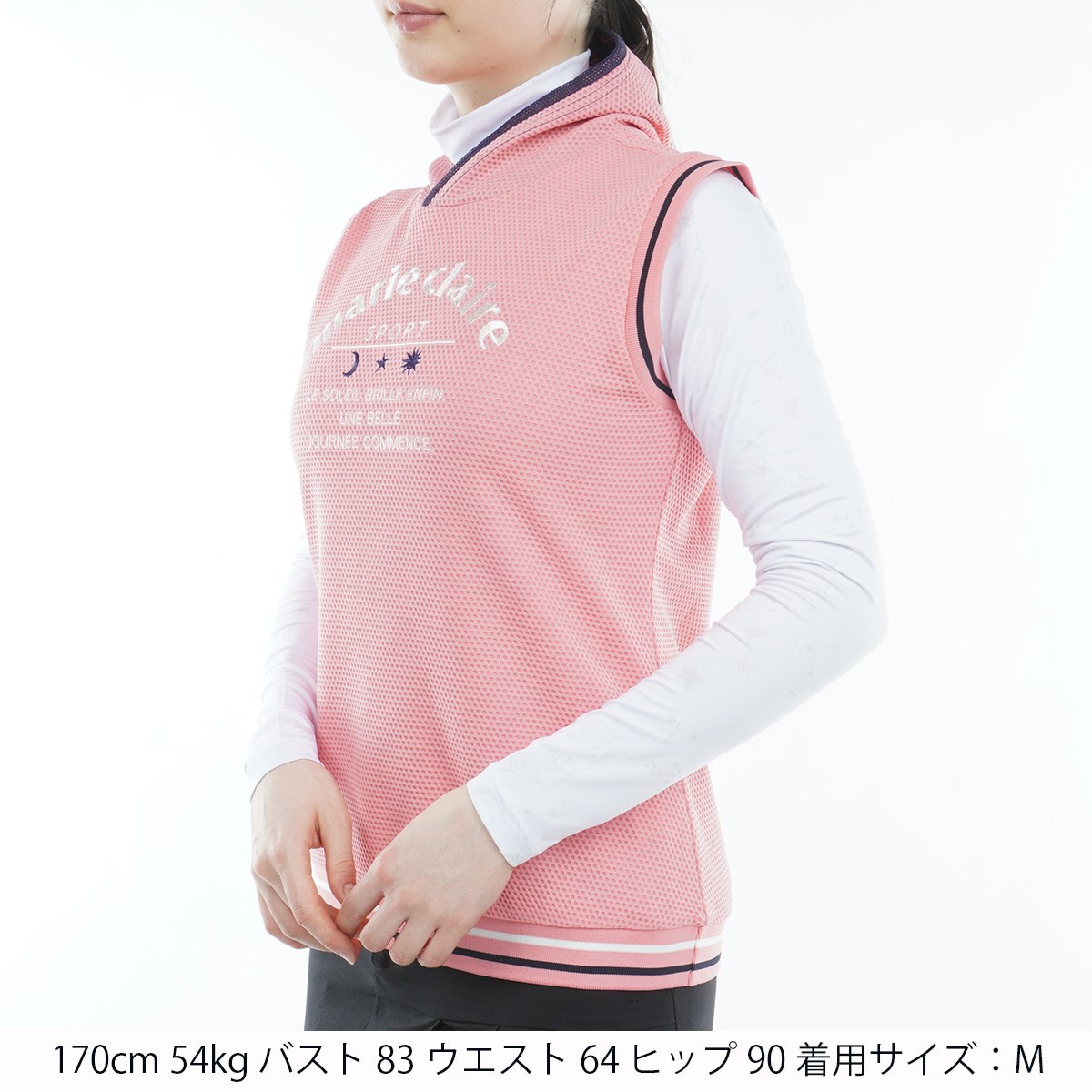マリクレール marie claire 長袖インナーシャツ付きストレッチワッフルベスト L ピンク レディス