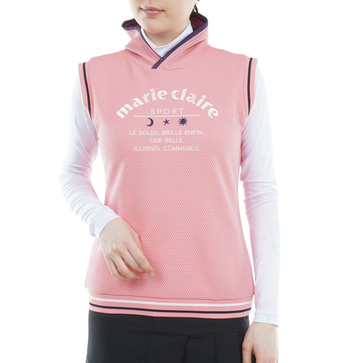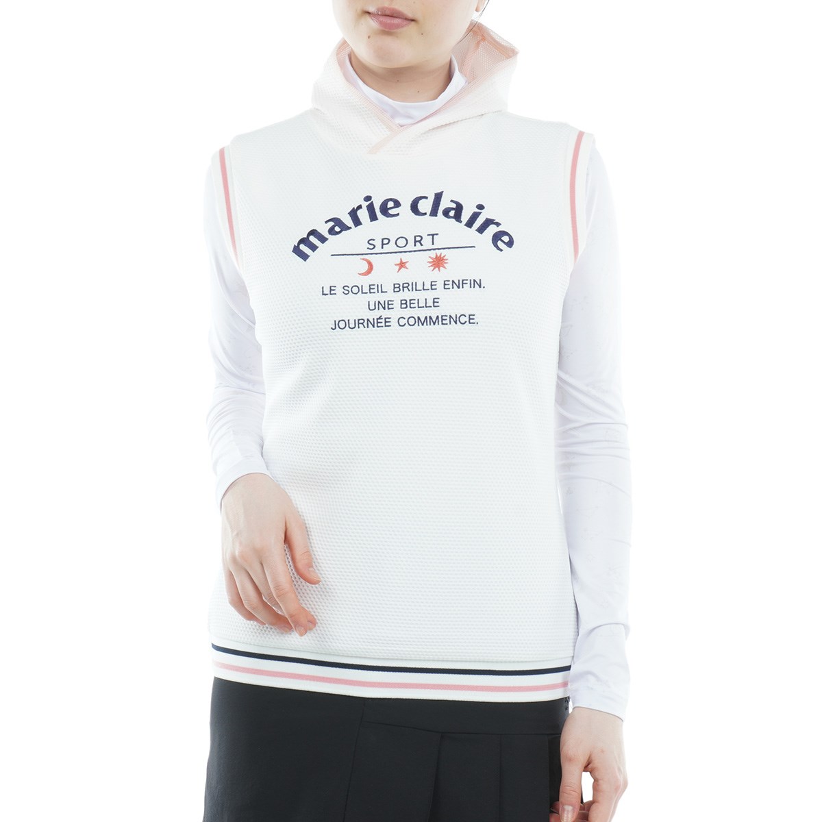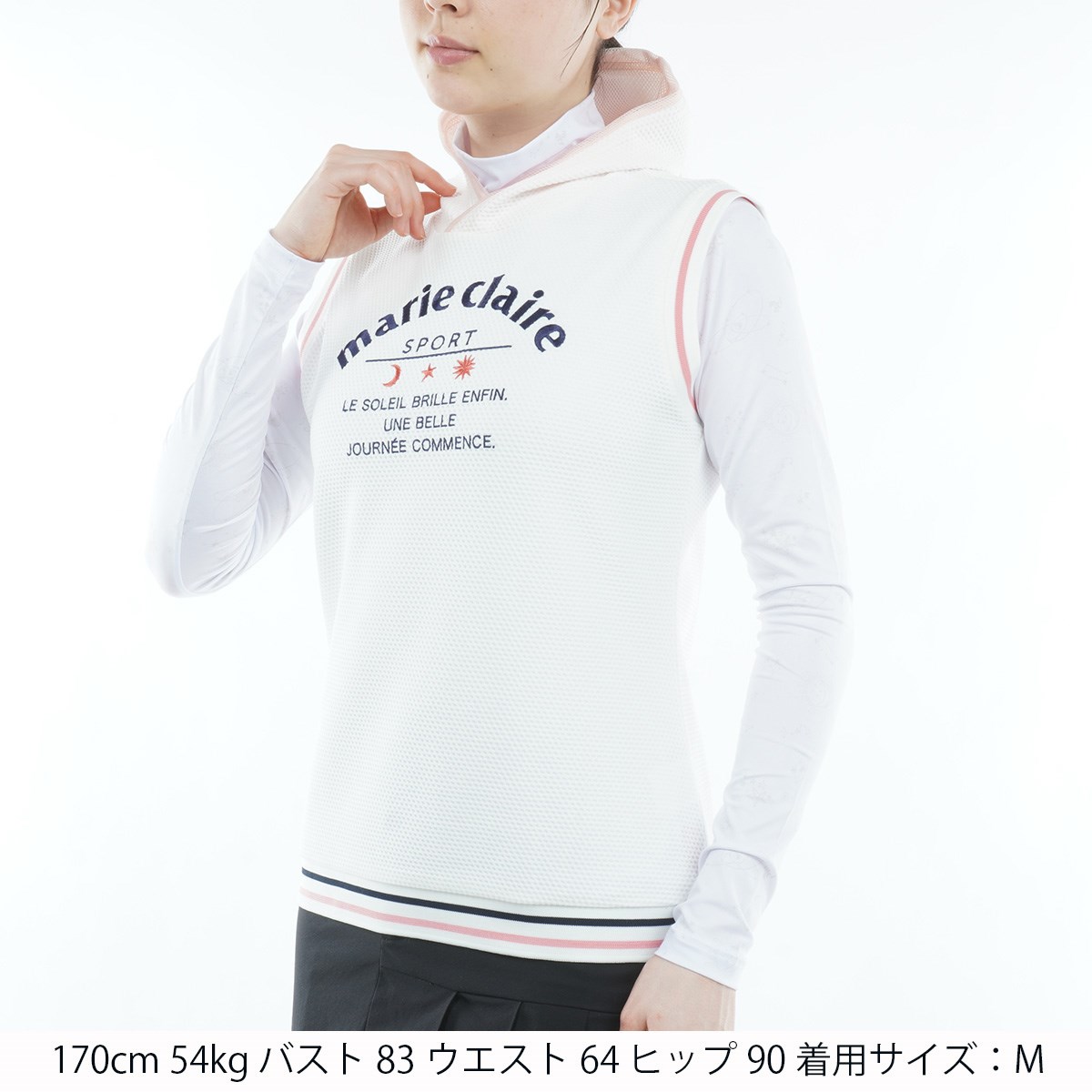 マリクレール marie claire 長袖インナーシャツ付きストレッチワッフルベスト LL ホワイト レディス
