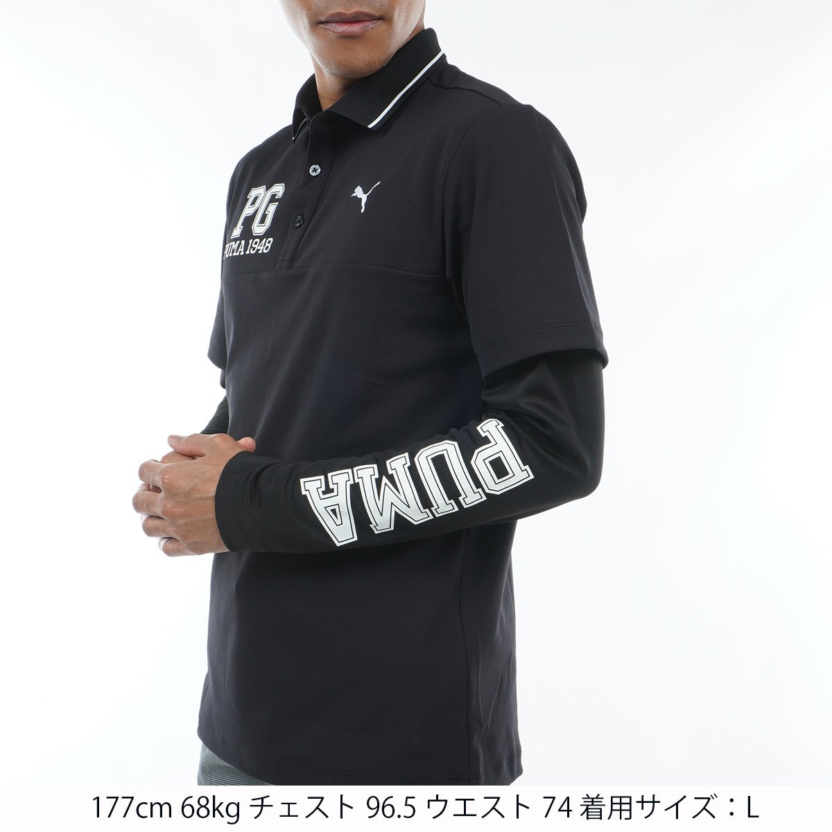 プーマ PUMA 長袖インナーシャツ付き 半袖ポロシャツ M プーマブラック 01