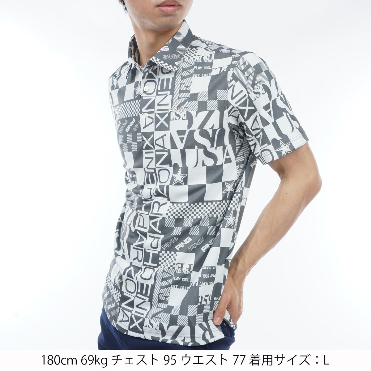 ピン PING ジャカード半袖ポロシャツ L グレー 020