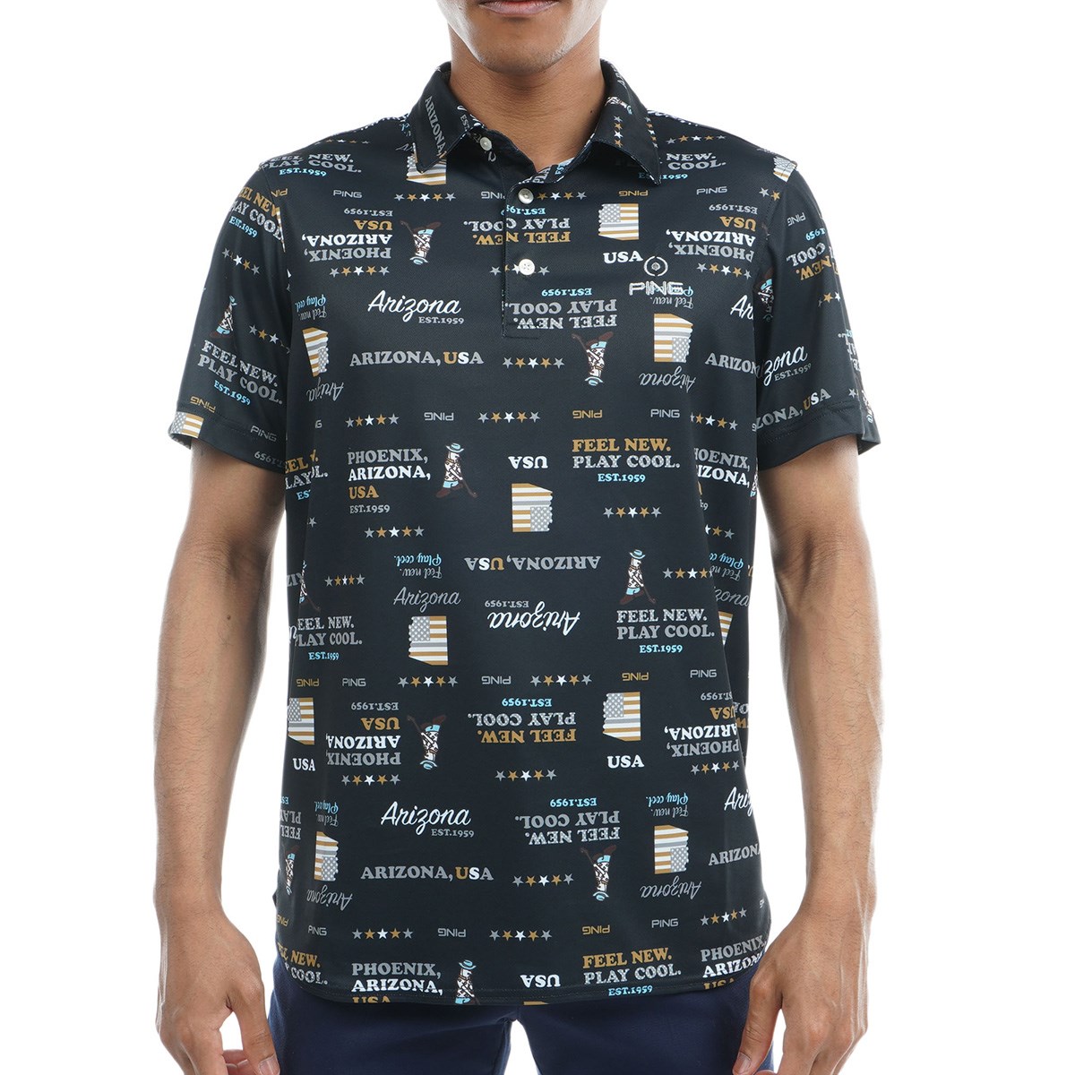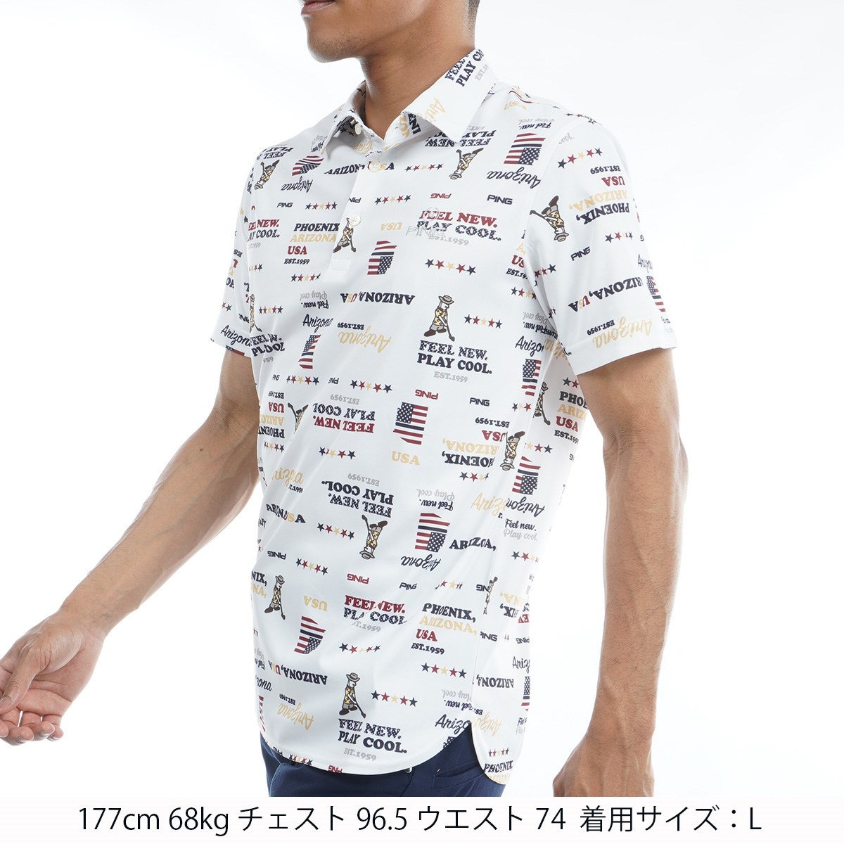 ピン PING ハローアリゾナハニカムプリント半袖ポロシャツ M ホワイト 030