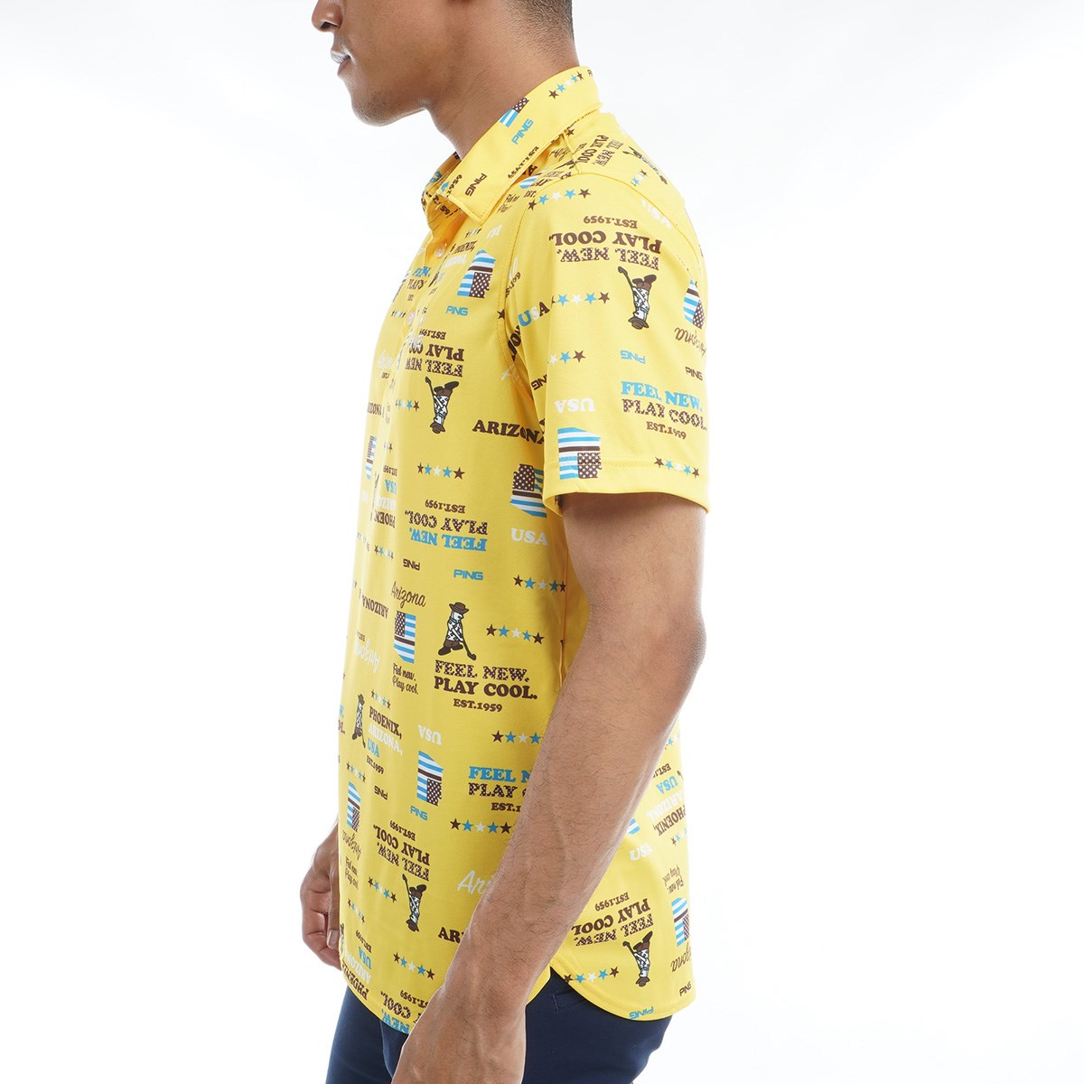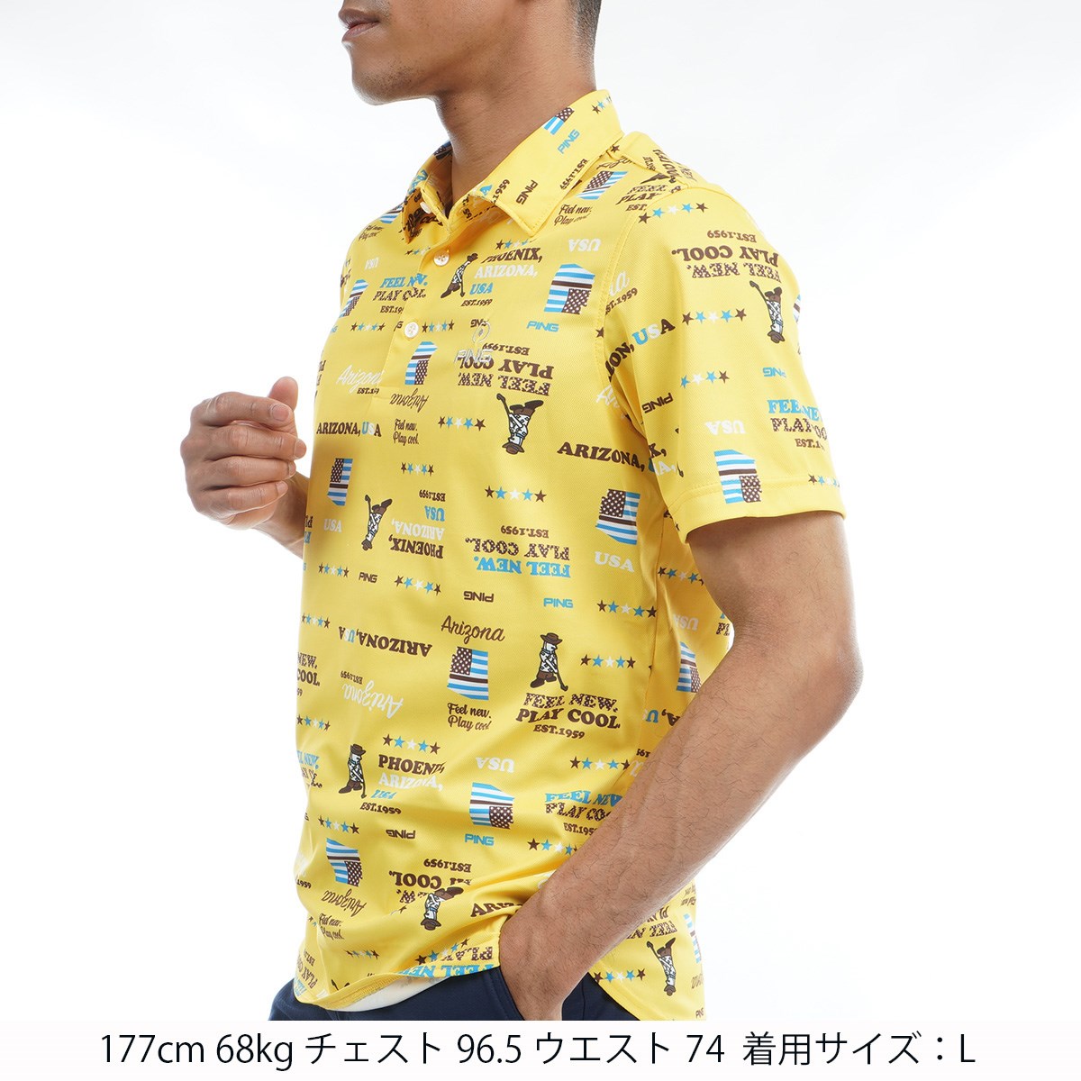 ピン PING ハローアリゾナハニカムプリント半袖ポロシャツ S イエロー 060