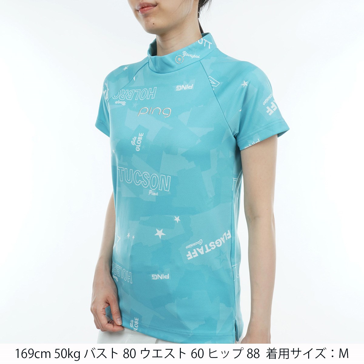 ピン PING カモフラ柄ジャカードハイネック半袖シャツ M ブルー 110 レディス