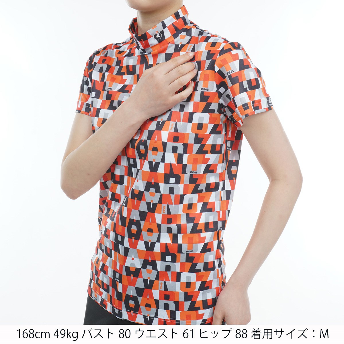 ピン PING クールマックス鹿の子ハイネック半袖シャツ M レッド 100 レディス