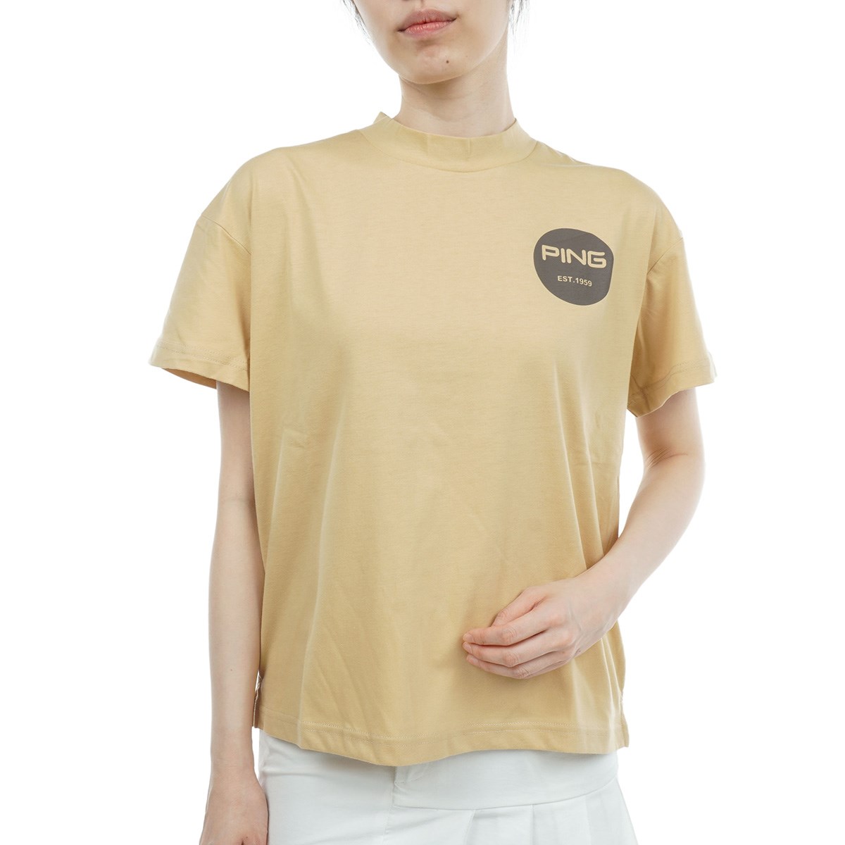 【ホワイト 030・ベージュ 040・イエロー 060・ピンク 090・レッド 100・ブルー 110・ターコイズ 111・ネイビー 120・カーキ 180】ポリエステル67%、コットン33%【PING APPAREL】10色 ビッグシルエット グラフィック天竺半袖ハイネックカットソー <NATIVE> (LADIES)遊び心溢れるグラフィックを落とし込んだ、ビッグシルエットのグラフィック天竺半袖ハイネックカットソー。カラー違いで異なるデザインで仕上げた、Tシャツ感覚でカジュアルに使えるリラックス感とラフさのあるハイネックカットソーです。ポリエステルとコットンの優しい肌触りと吸水速乾性の良さで、一日中快適に過ごせます。豊富なカラーバリエーションと、SSからLLまでの5パターンのサイズ展開で、幅広い世代のゴルファーに着用していただける逸品に仕上げています。自分用としても、ギフトとしても喜んでいただけること間違いなしのアイテムです。