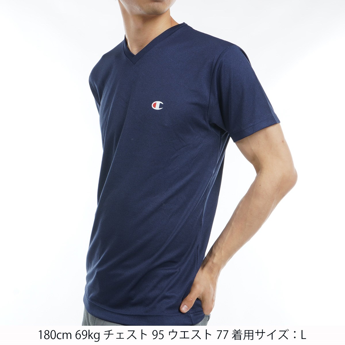 チャンピオン Champion Vネック半袖Tシャツ LL ヘザーネイビー 379