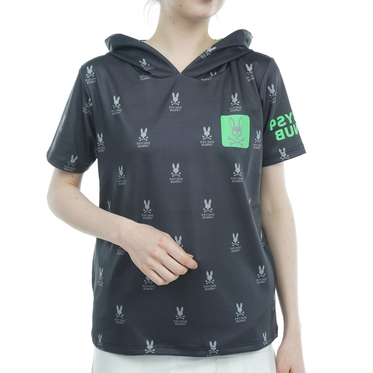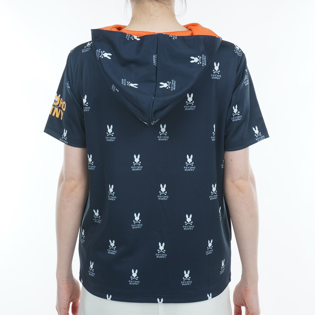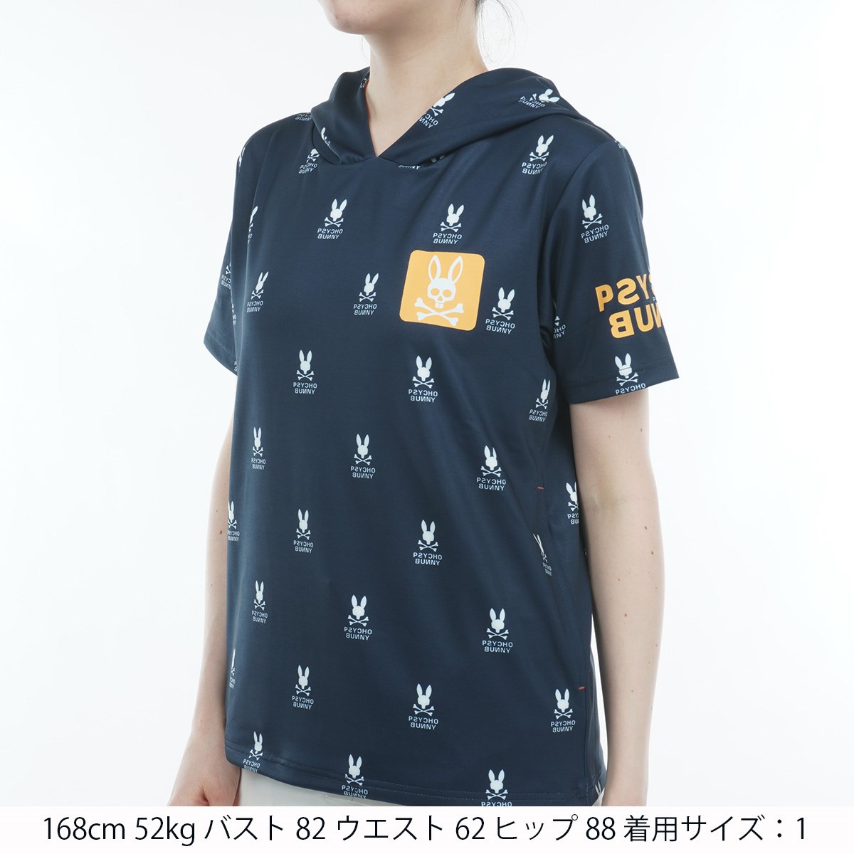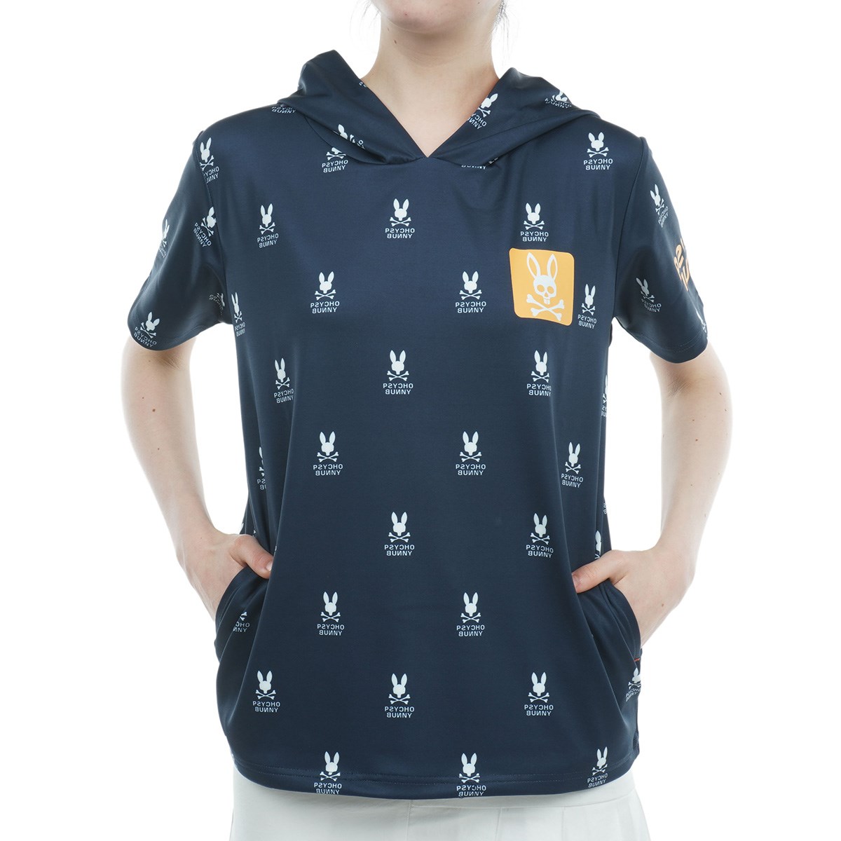 サイコバニー PSYCHO BUNNY ロゴパターン 半袖フーディー 1 ネイビー レディス
