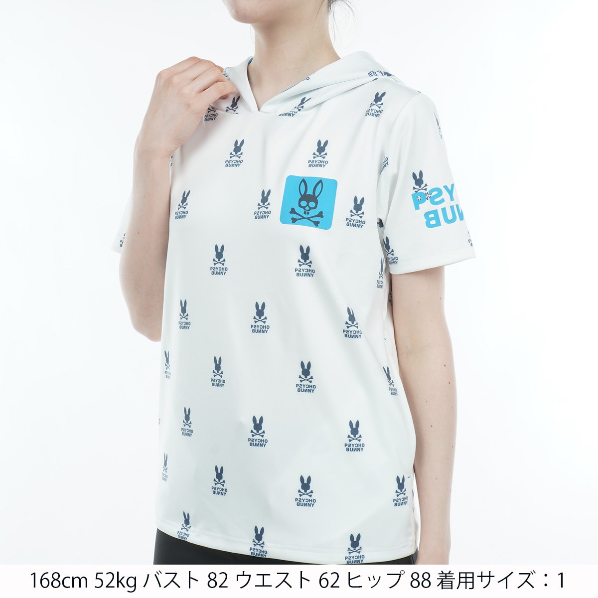 サイコバニー PSYCHO BUNNY ロゴパターン 半袖フーディー 1 ホワイト レディス
