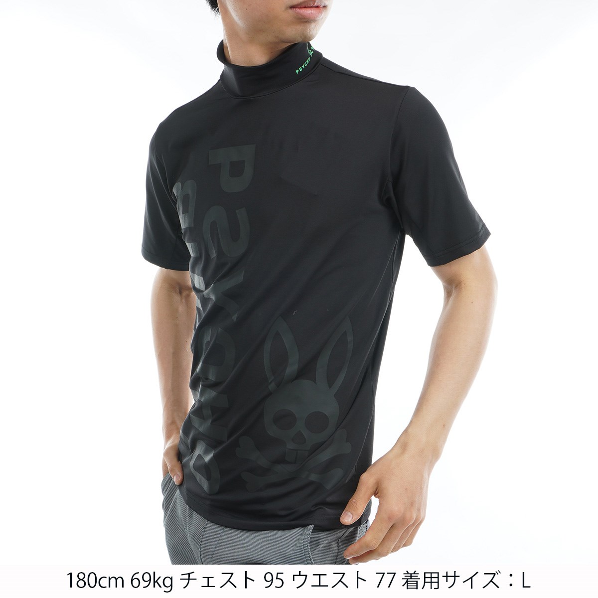 サイコバニー PSYCHO BUNNY 縦ロゴプリント モックネック半袖Tシャツ L ブラック