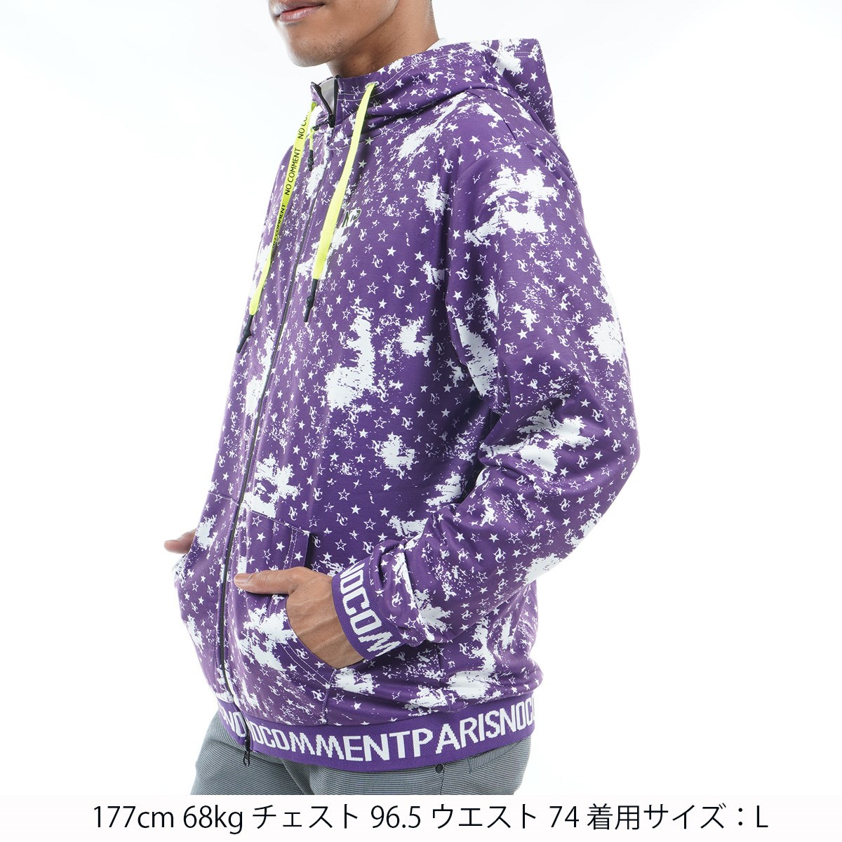 ノーコメントパリ NO COMMENT PARIS かすれモノグラムパーカー L パープル
