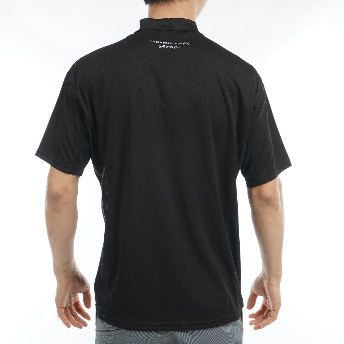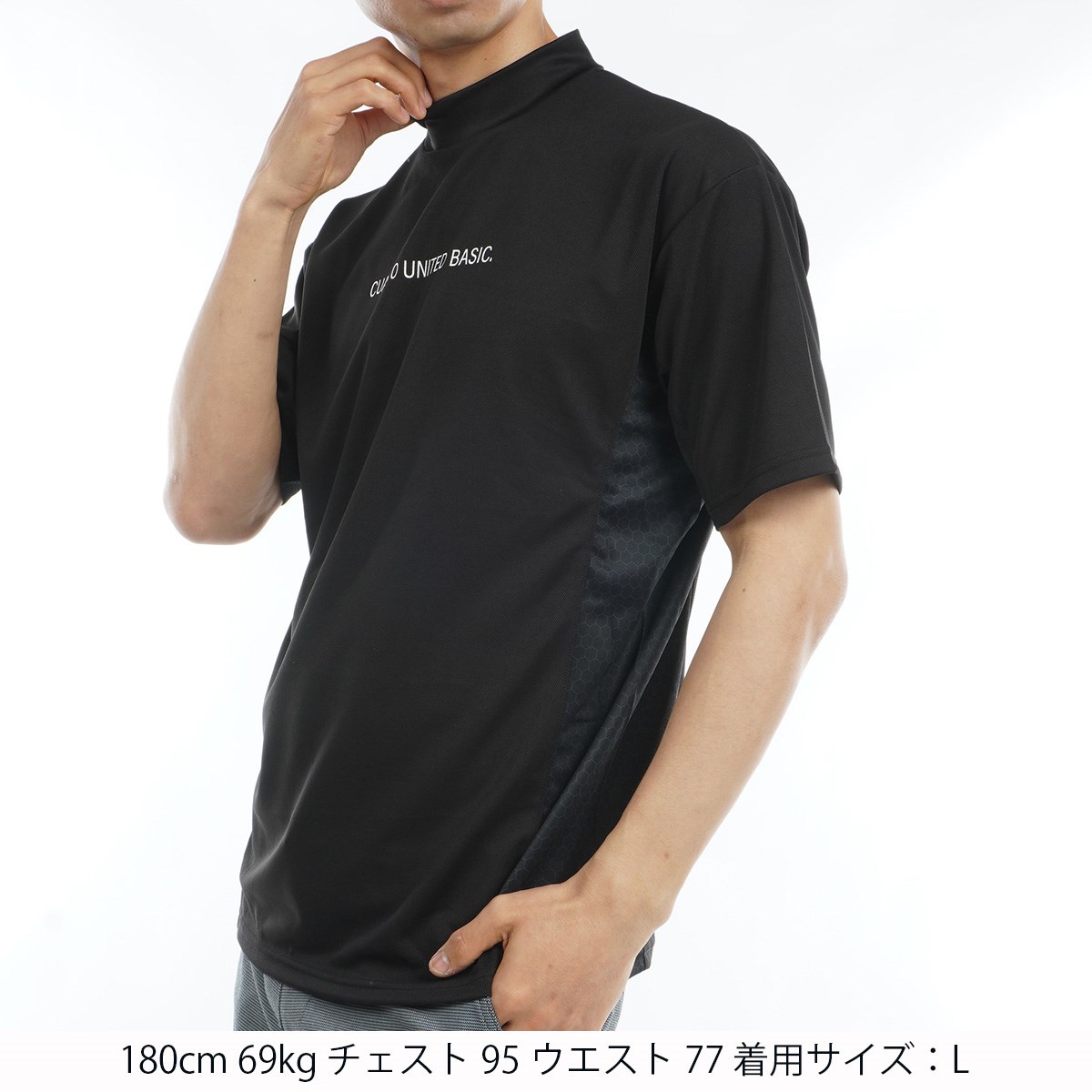 クアルトユナイテッド CUARTO UNITED ハニカム柄切替 モックネック半袖シャツ L ブラック