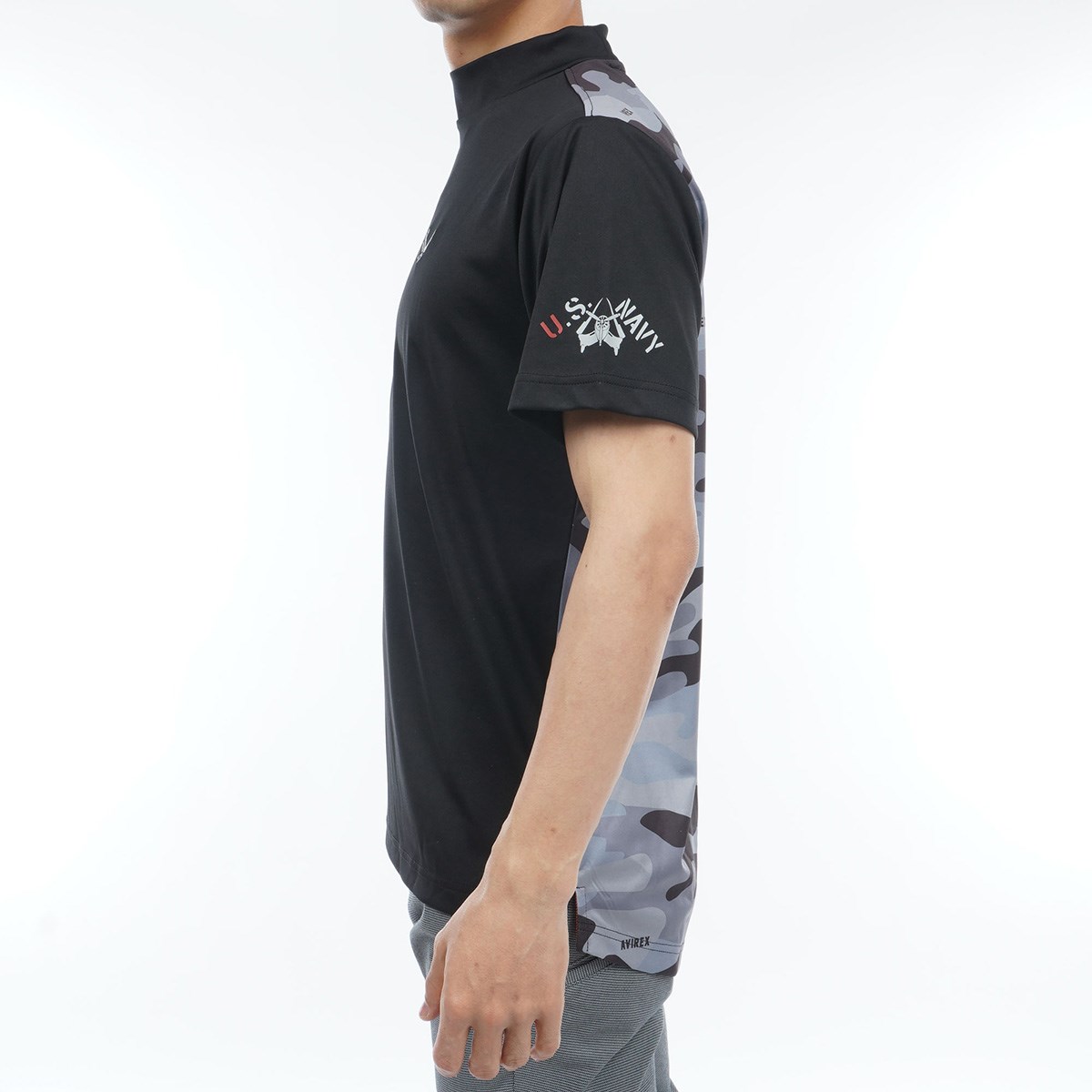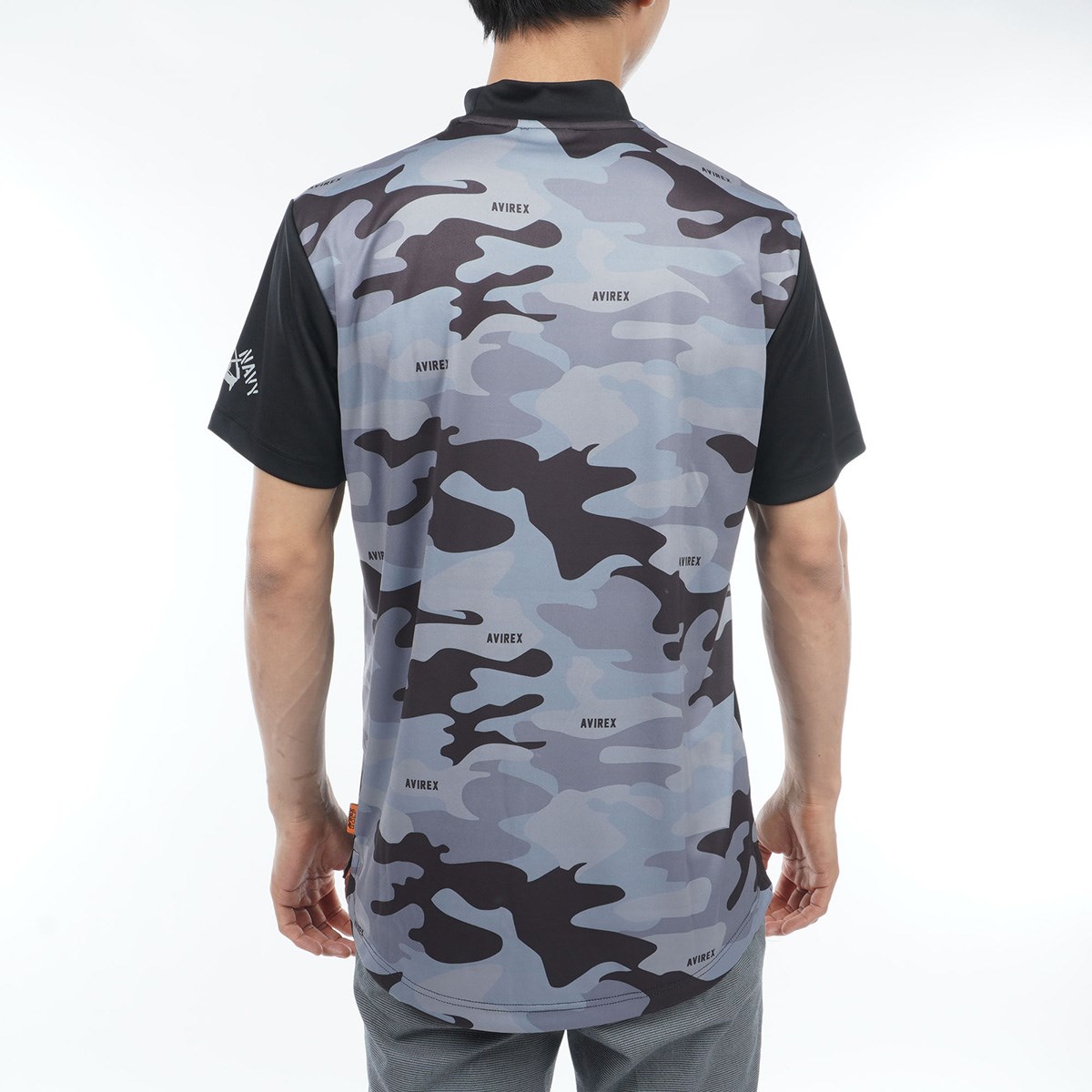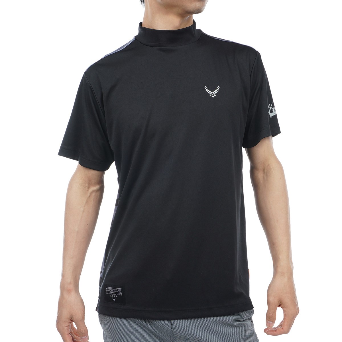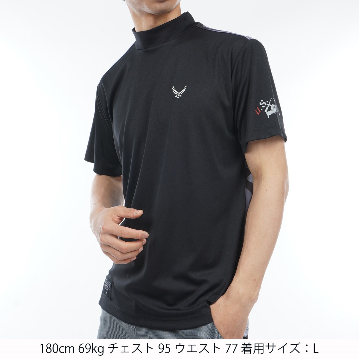 アヴィレックス ゴルフ AVIREX GOLF ロゴ刺繍 半袖モックネックシャツ L ブラック