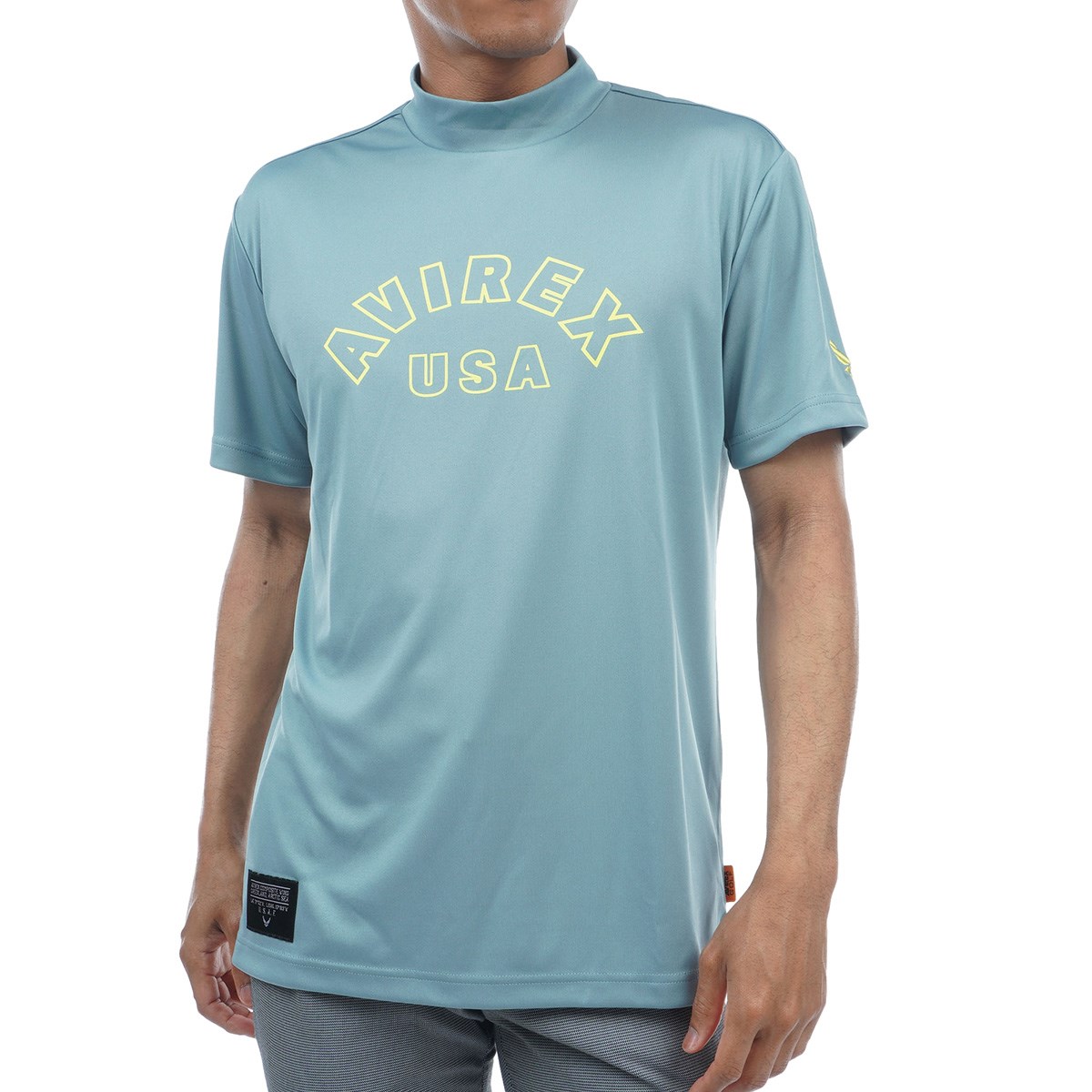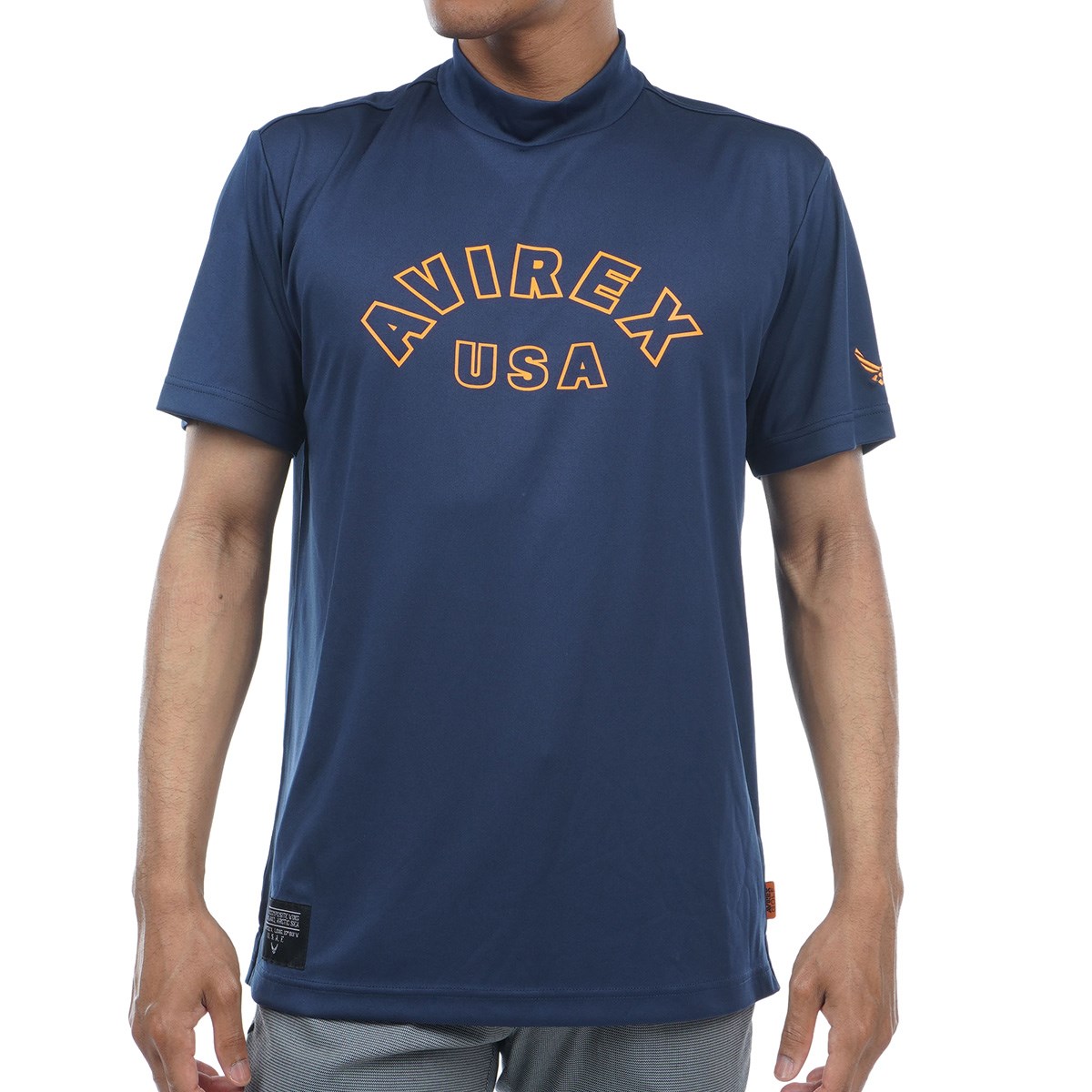 シンプルかつロゴにカラーバリエーションを加えたAVIREXモックネックシャツです。
