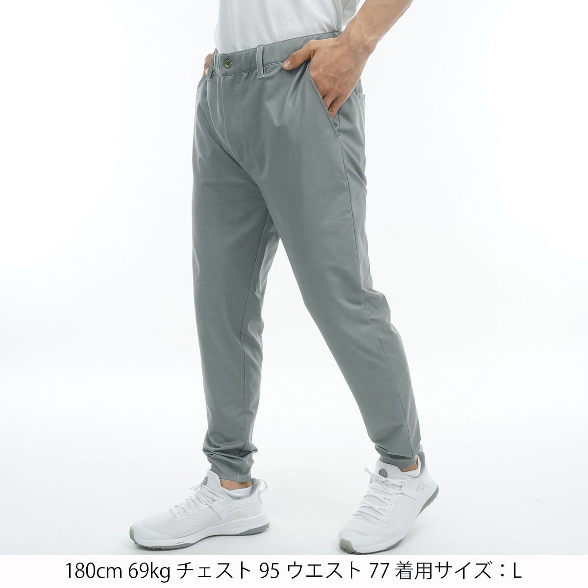 シンプルなジョガーパンツ、サイドのFIDRAロゴがポイント。