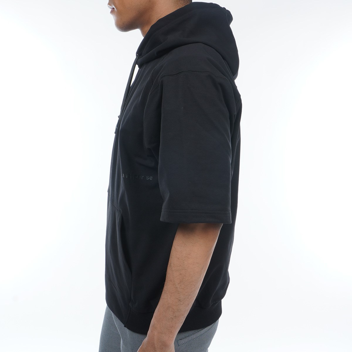 肌触りが良く、全方向へのストレッチ性を持つ裏毛カットソー(スウェット)素材「ドライ・エアリー・フレンチテリー・エコ」を使用した5分袖プルパーカー。