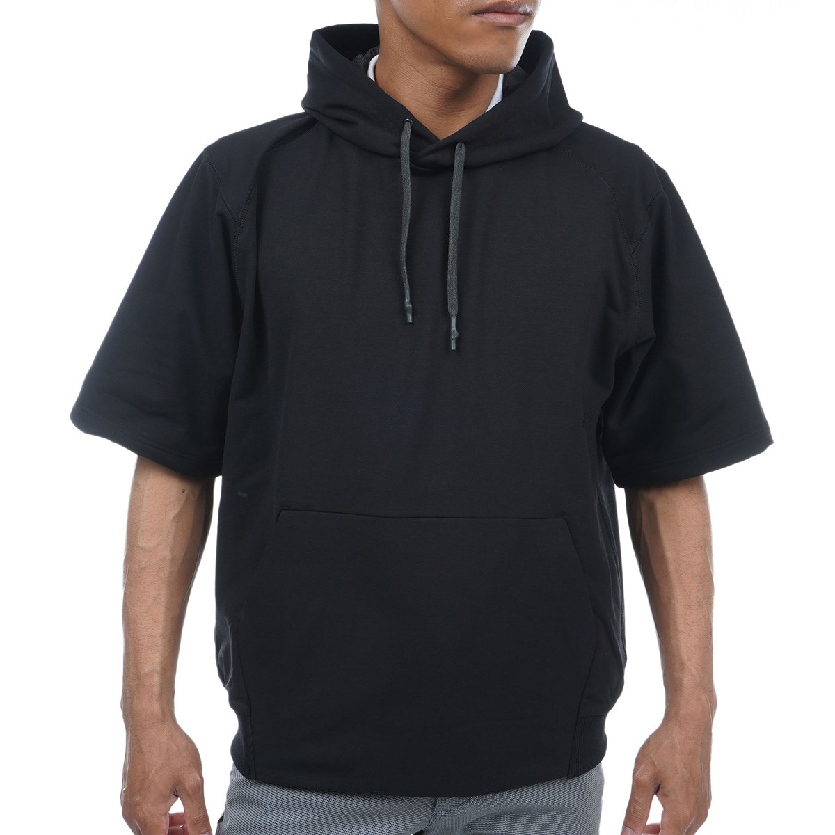 肌触りが良く、全方向へのストレッチ性を持つ裏毛カットソー(スウェット)素材「ドライ・エアリー・フレンチテリー・エコ」を使用した5分袖プルパーカー。