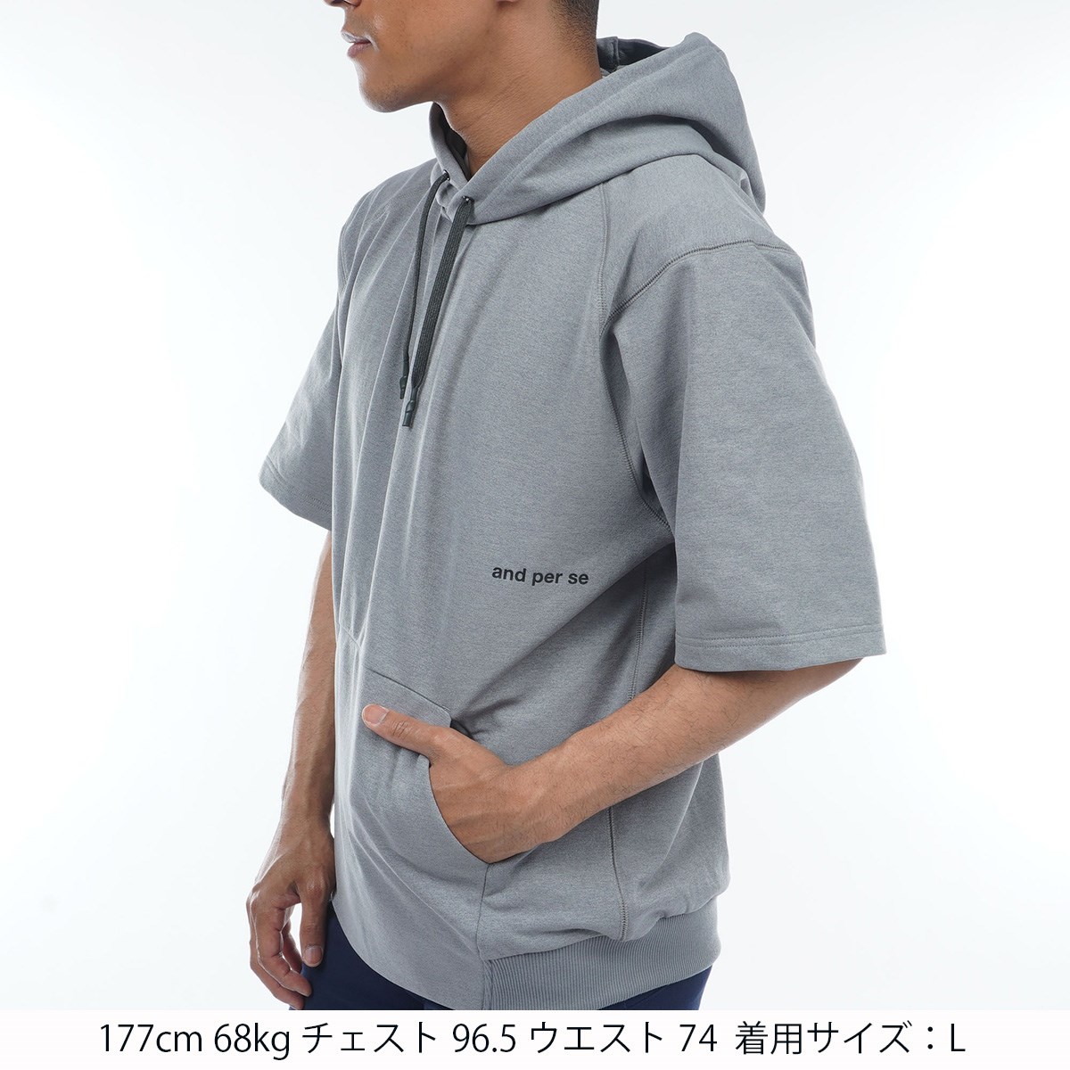 アンパスィ and per se & GOLF エアリーフレンチテリー ストレッチ 5分袖プルパーカー M グレー