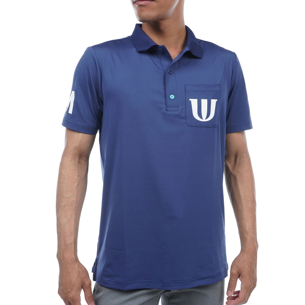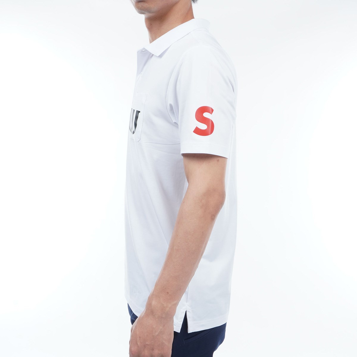 シンプルな半袖ポロシャツ、MUロゴのプリントがポイント。