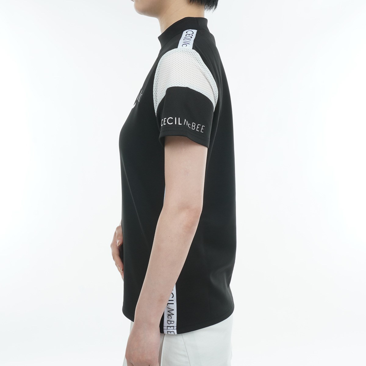 セシルマクビー グリーン CECIL McBEE green メッシュ半袖モックネックシャツ 1 ブラック レディス
