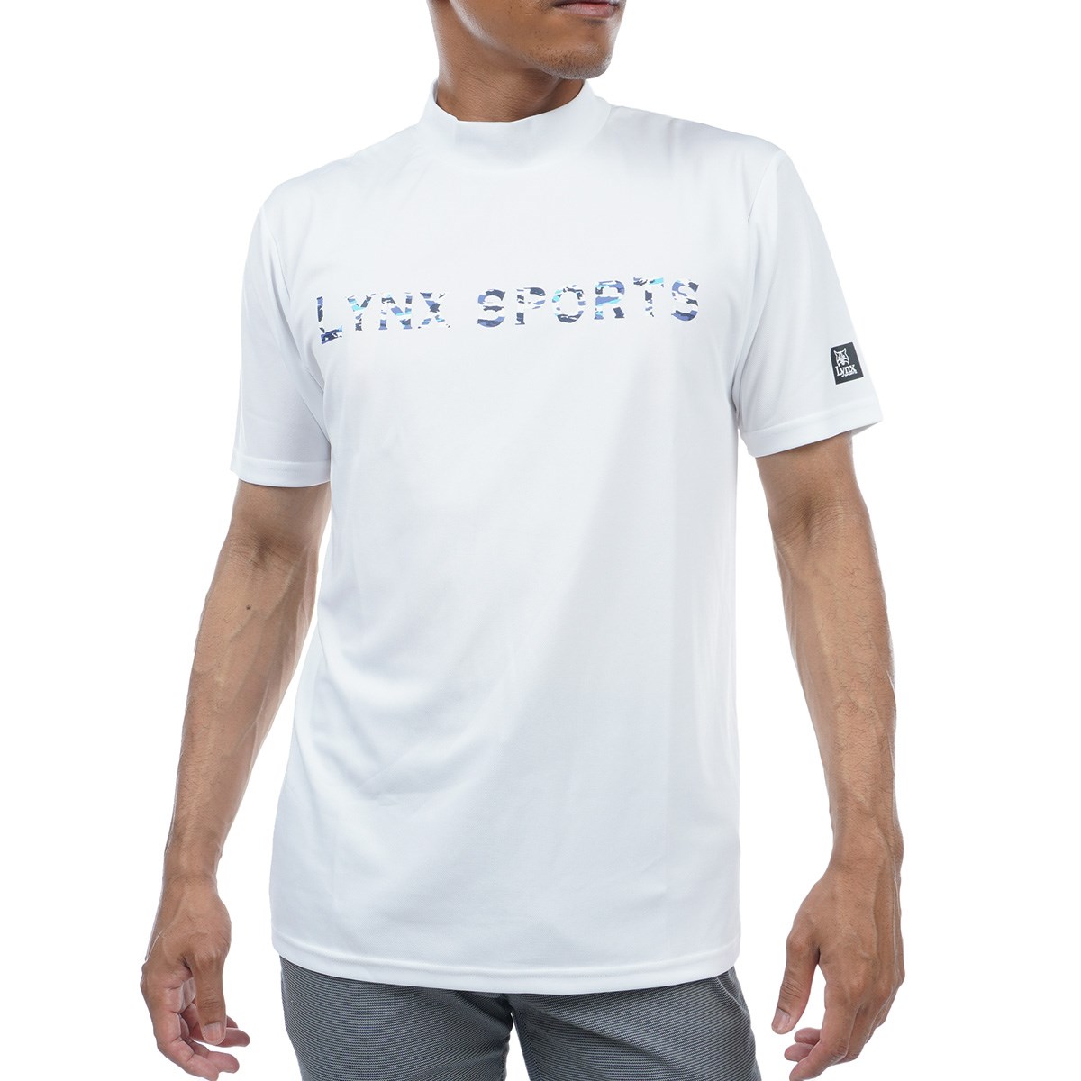 リンクススポーツ Lynx SPORTS ロゴプリント モックネック半袖シャツ L ホワイト