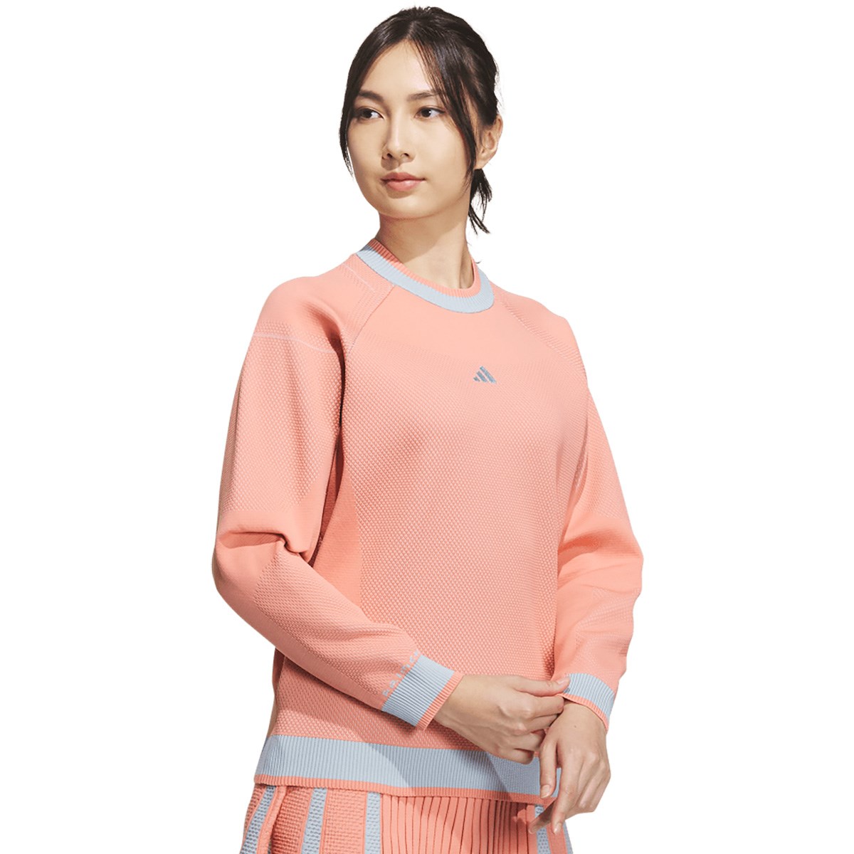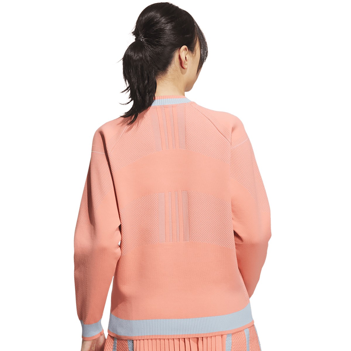 ジャカードパターンの設計により、セーターアイテムの運動性能を向上させたPRIMEKNITの長袖クルーネックセーター。