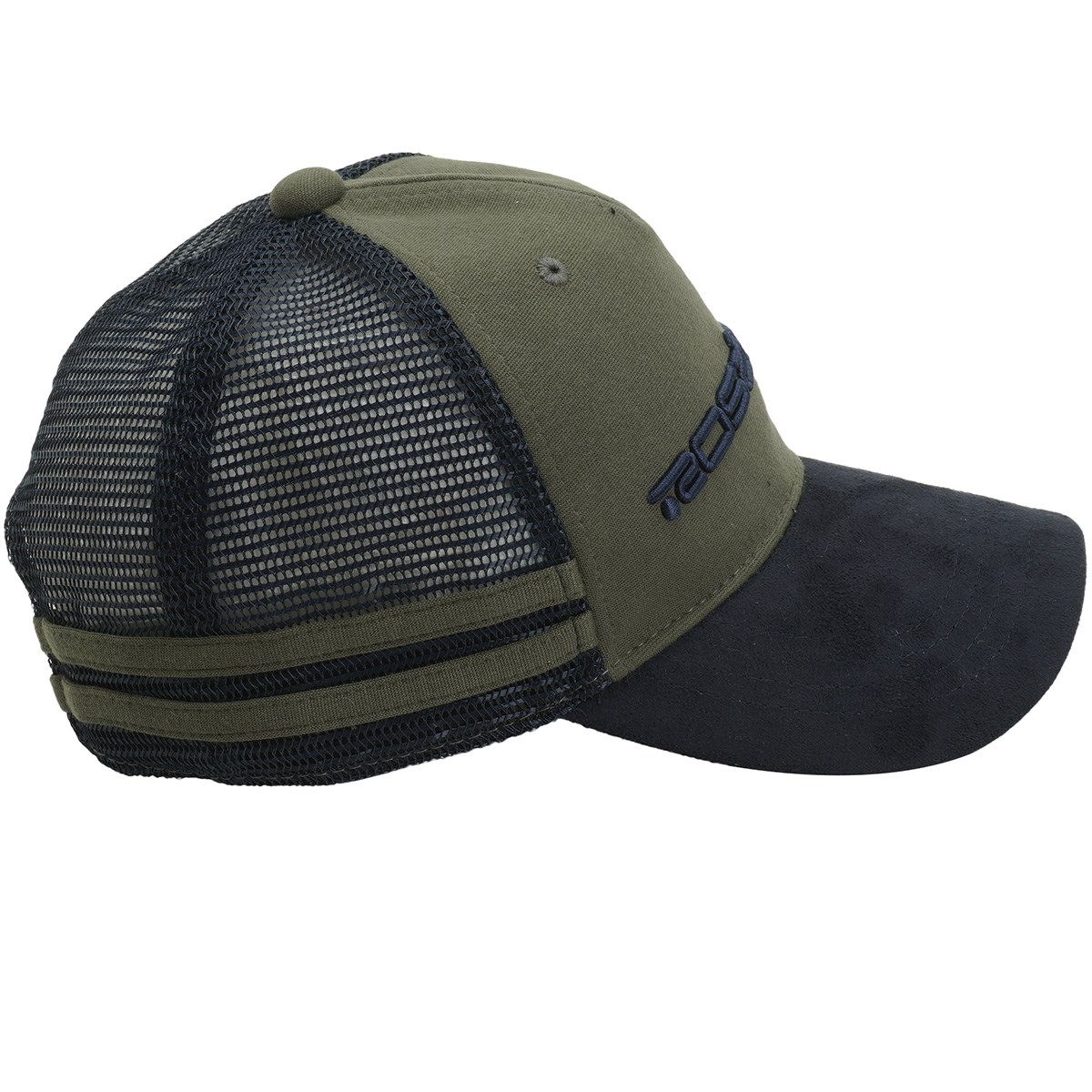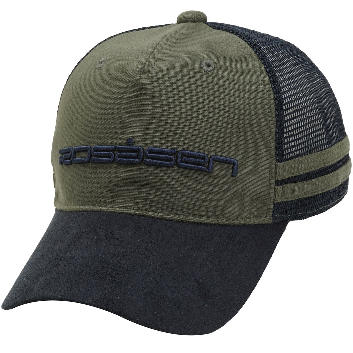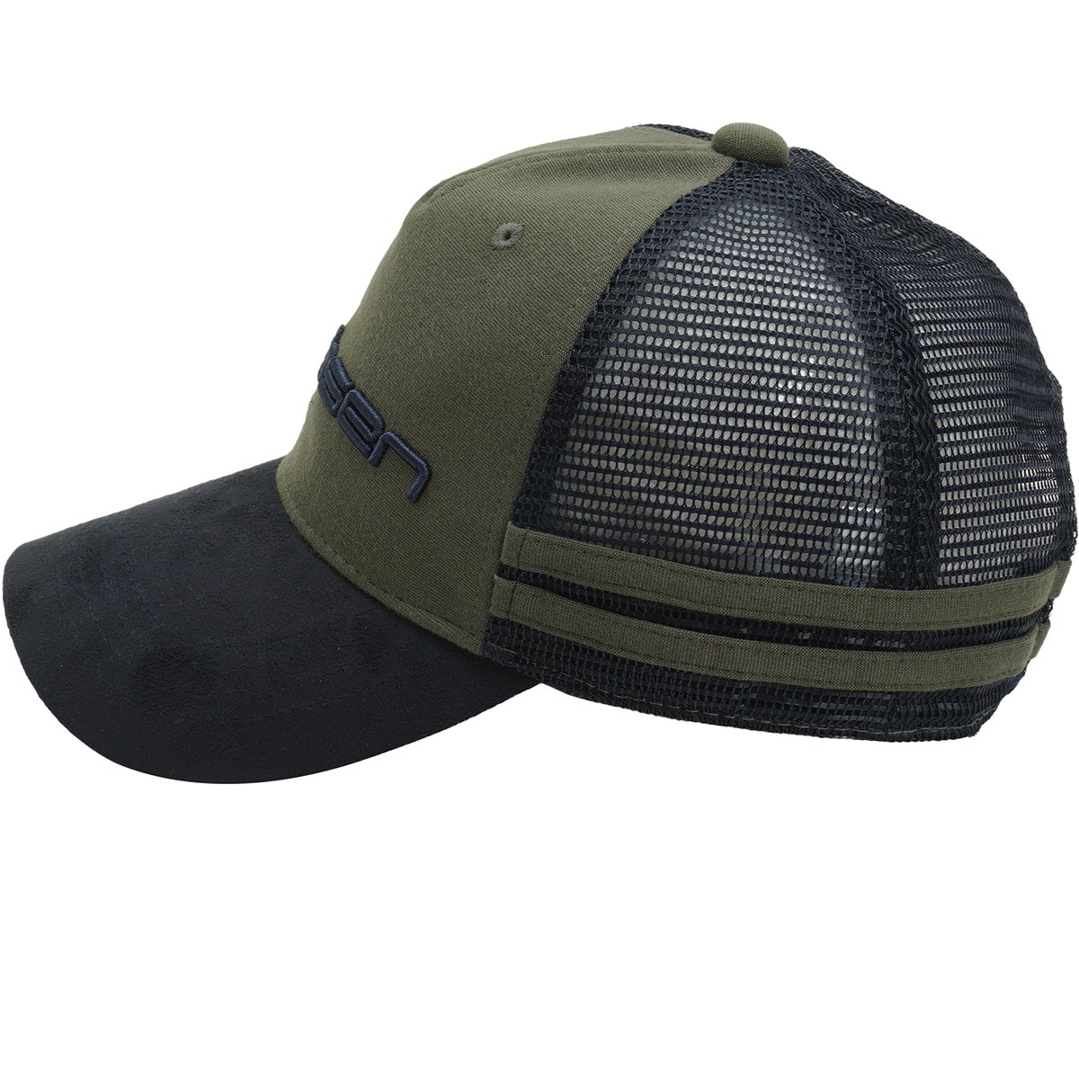 本体前はレーヨン/ナイロンのポンチを、ツバはスウェードを、後はアメリカンメッシュを使用。