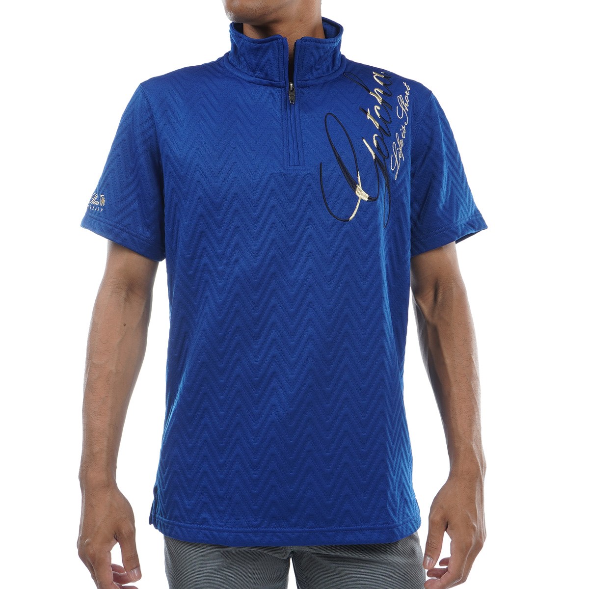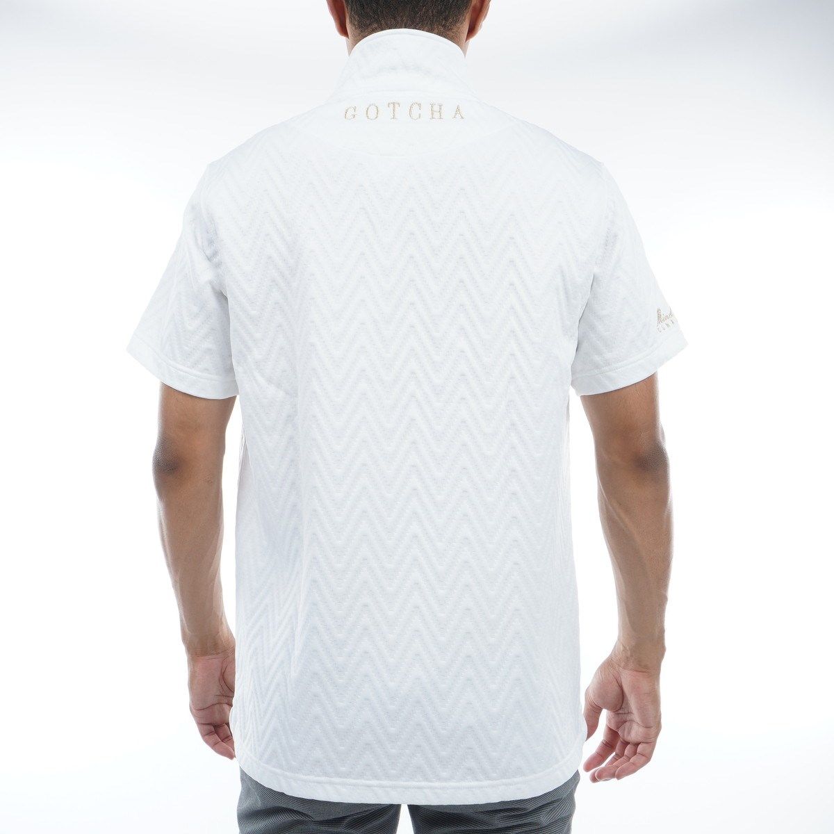 ガッチャゴルフ GOTCHA GOLF 膨れジャカード ゴールドハーフジップ半袖シャツ XL ホワイト 001