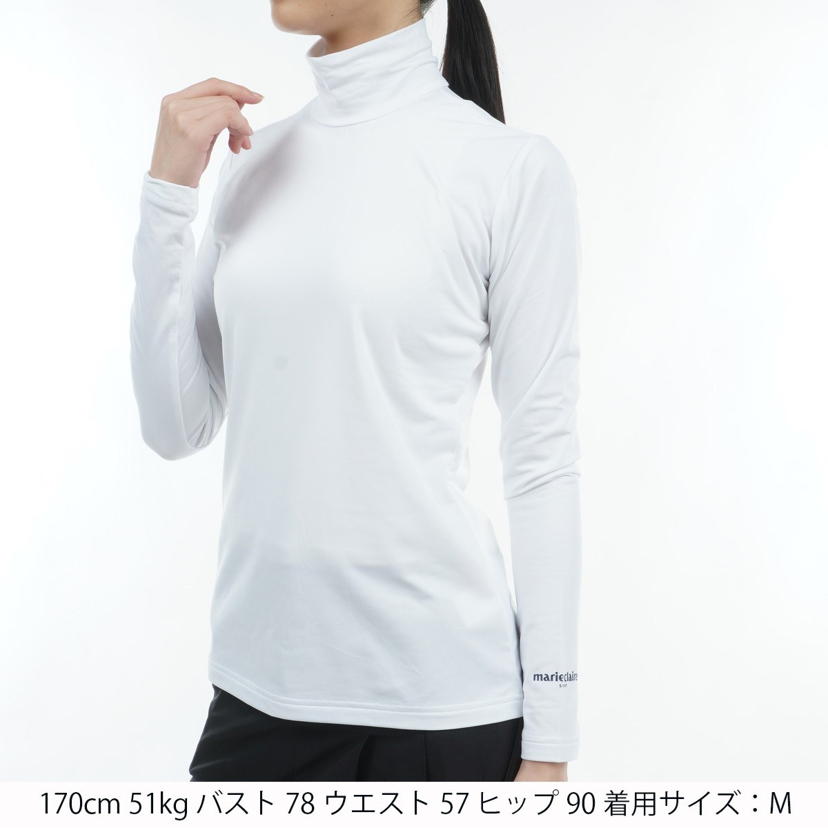 マリクレール marie claire 裏起毛 ハイネック長袖インナーシャツ M ホワイト レディス