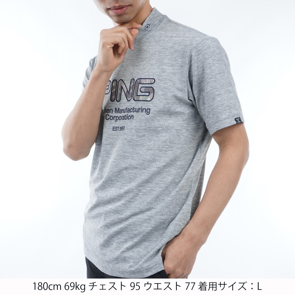 ピン PING ドライミックスストレッチハニカム ハイネック半袖シャツ S 杢グレー 022