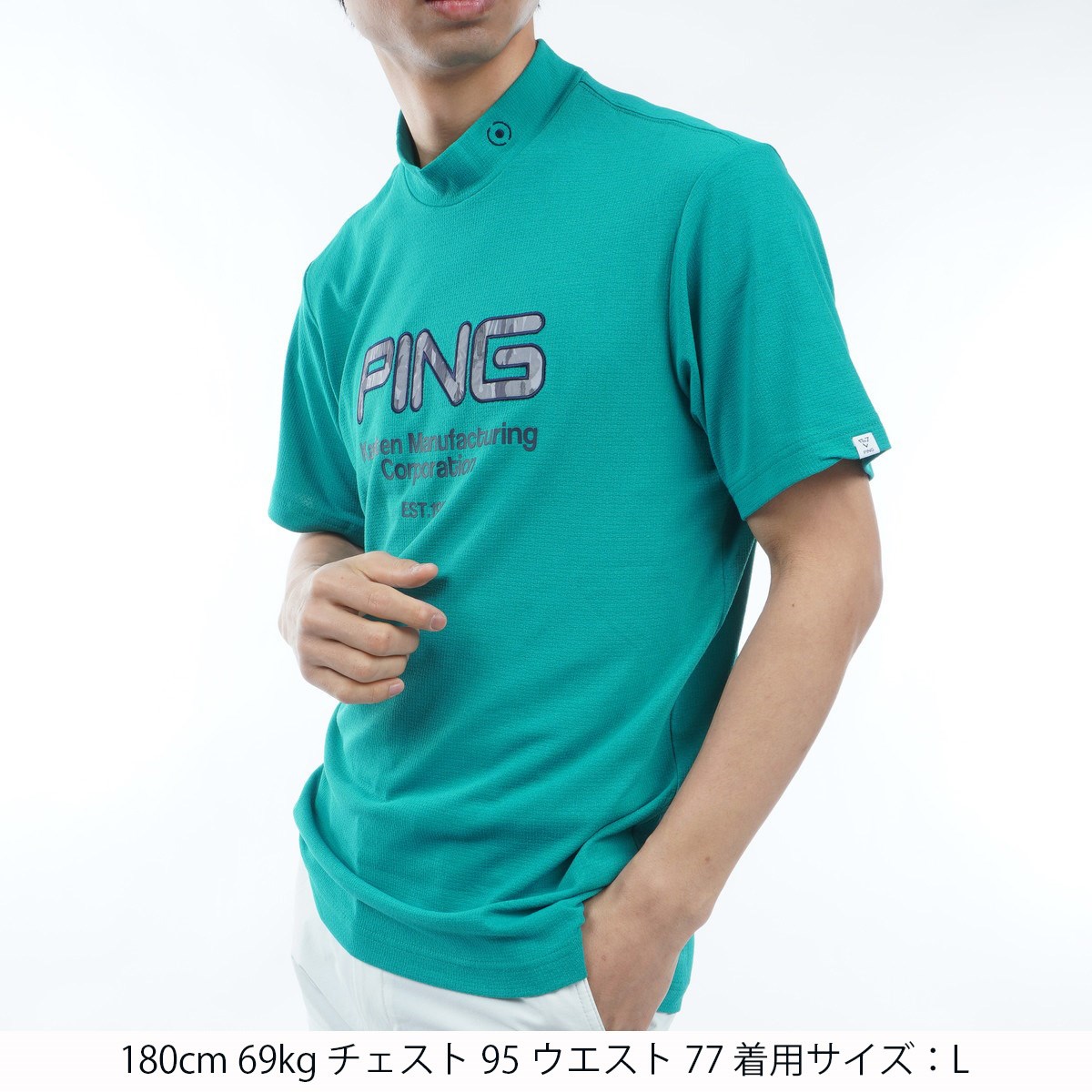 ピン PING ドライミックスストレッチハニカム ハイネック半袖シャツ 3L グリーン 130