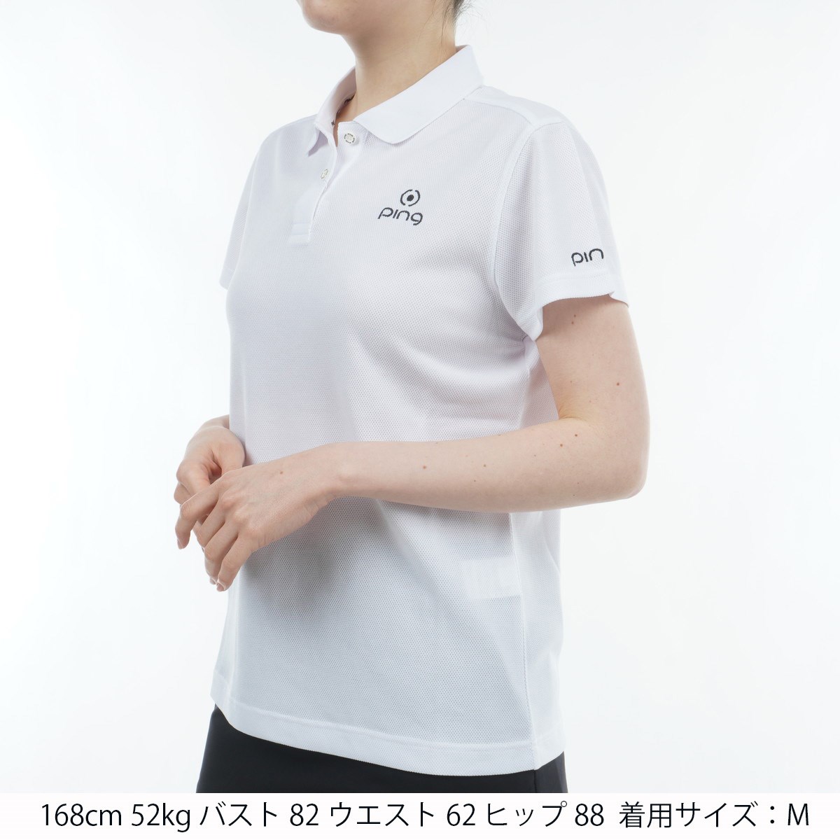 ピン PING オニ鹿の子ストレッチジャカード 半袖ポロシャツ M ホワイト 030 レディス