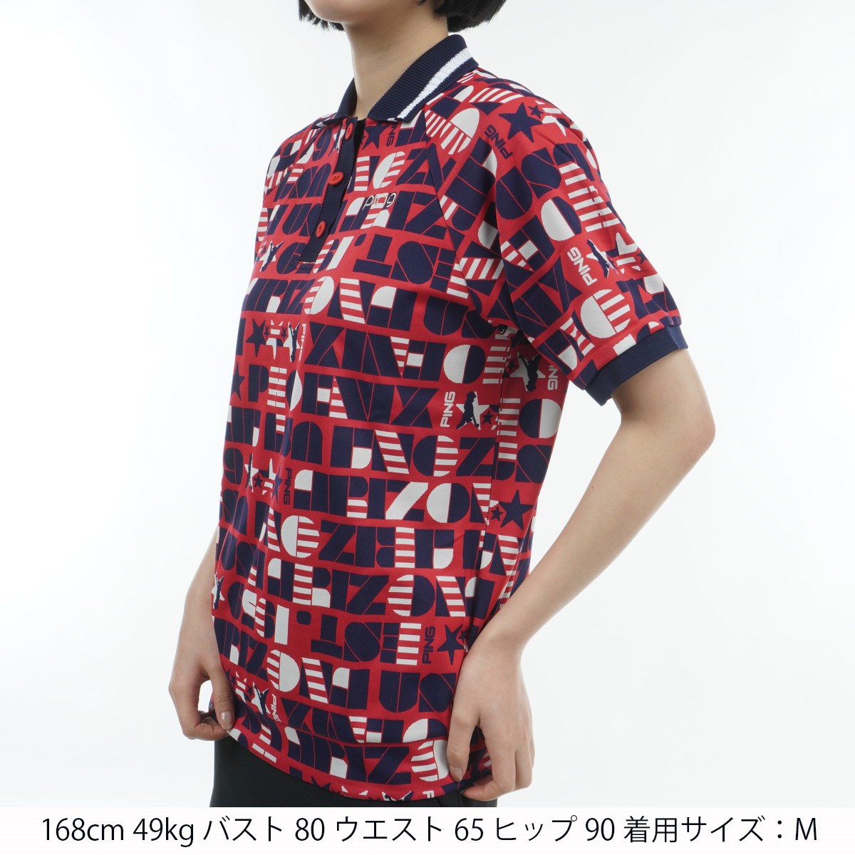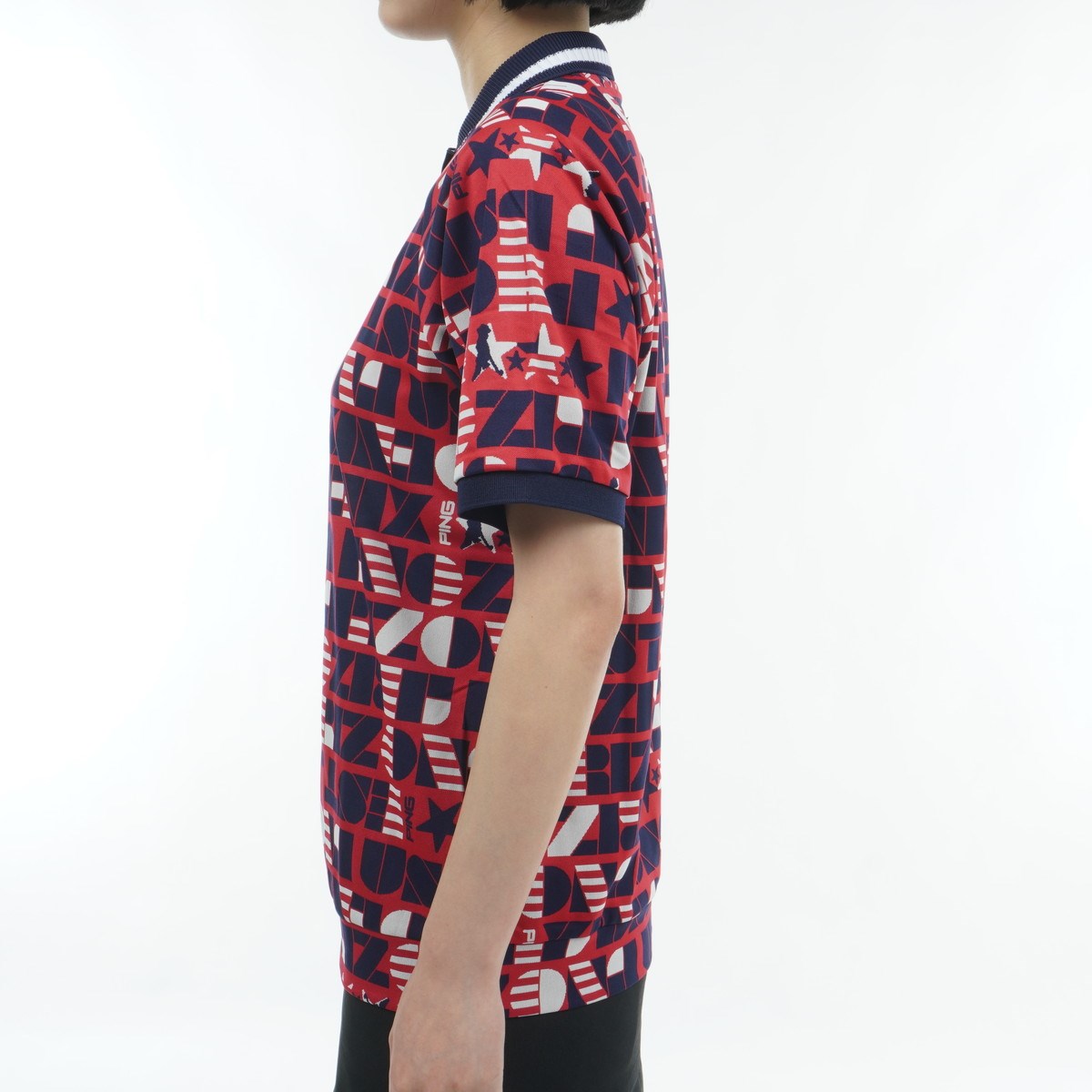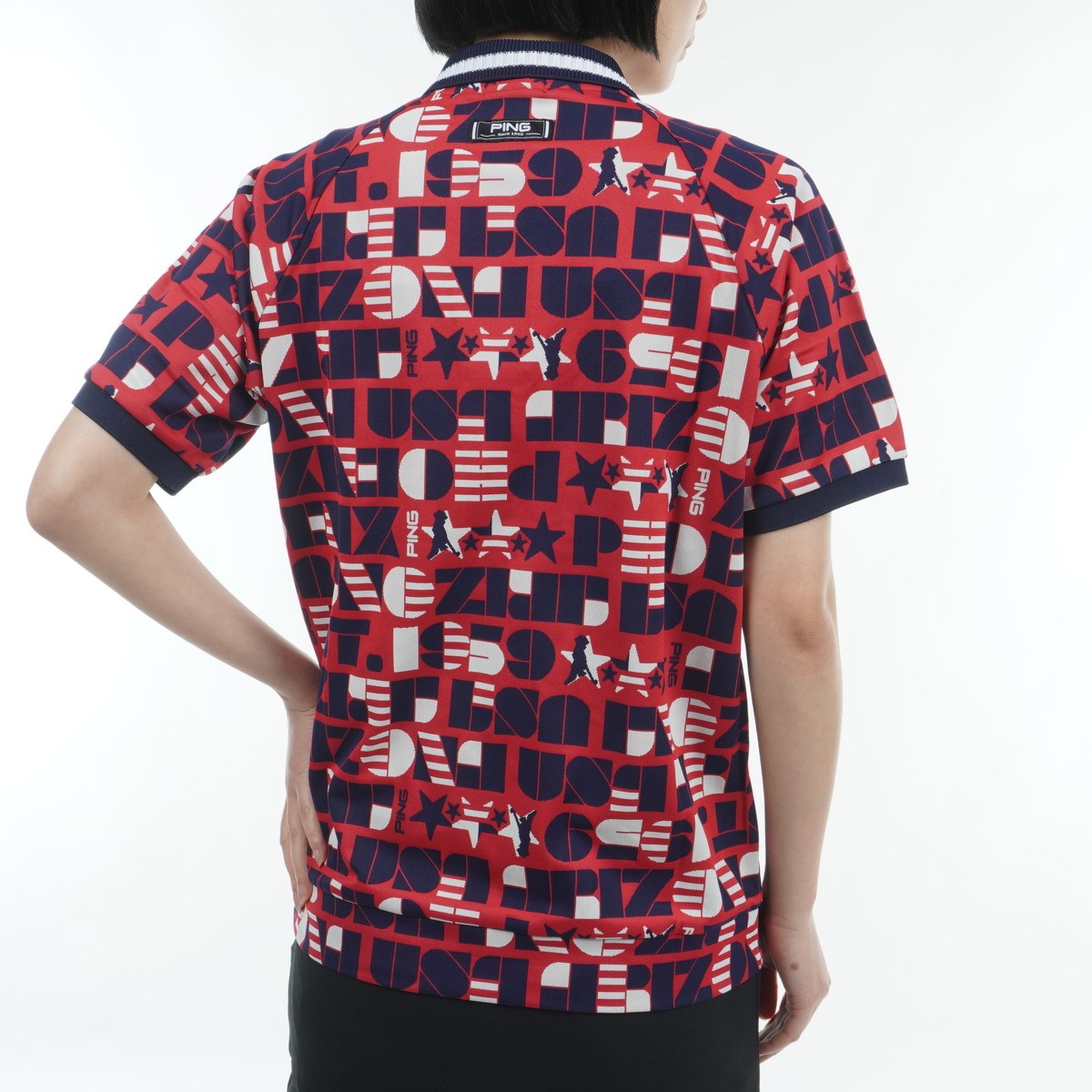 ピン PING USA柄ジャカード 半袖ポロシャツ L ピンク 090 レディス