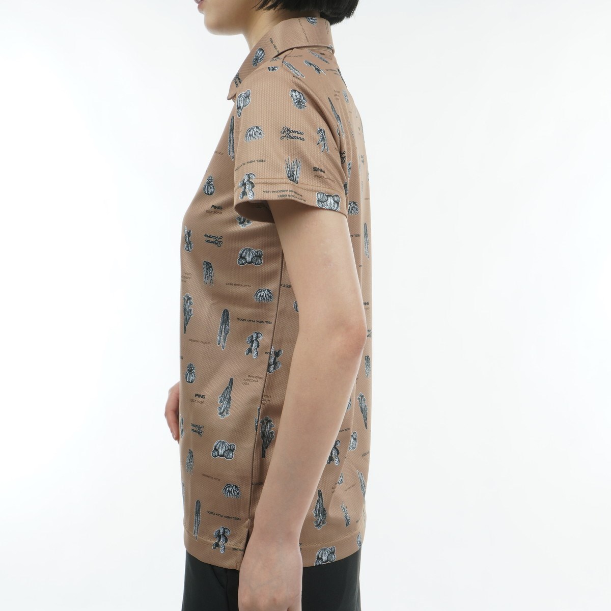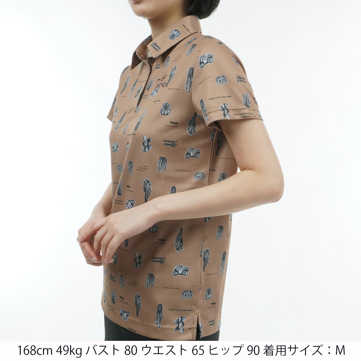 ピン PING サボテン柄 半袖ポロシャツ L ベージュ 040 レディス