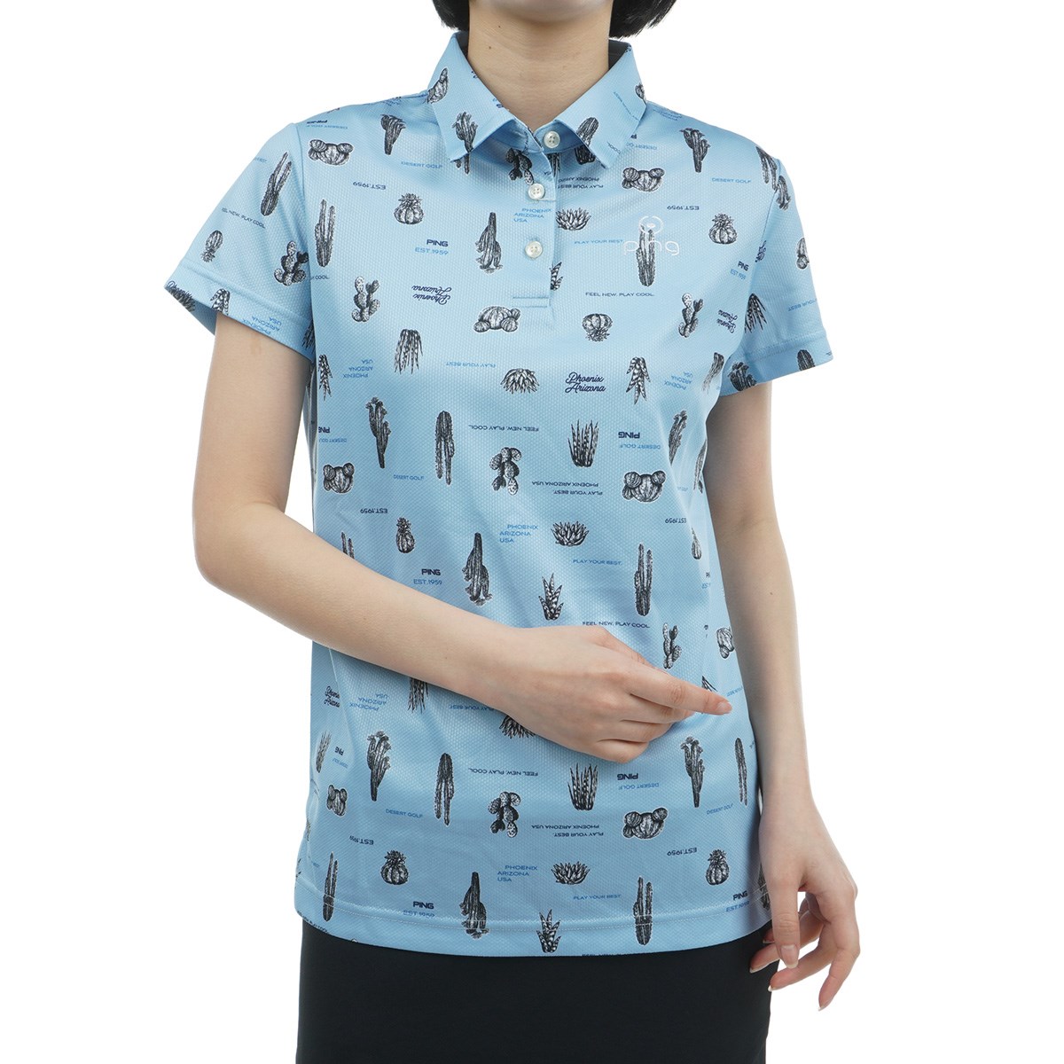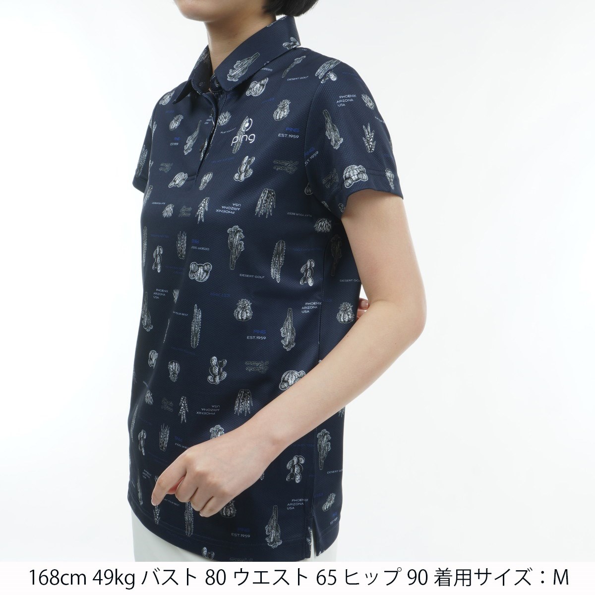 ピン PING サボテン柄 半袖ポロシャツ M ネイビー 120 レディス
