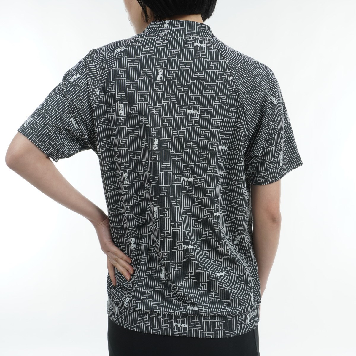 ピン PING AZモノグラムジャカードハイネック半袖シャツ L ブラック 010 レディス