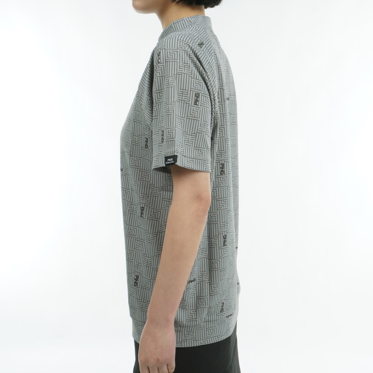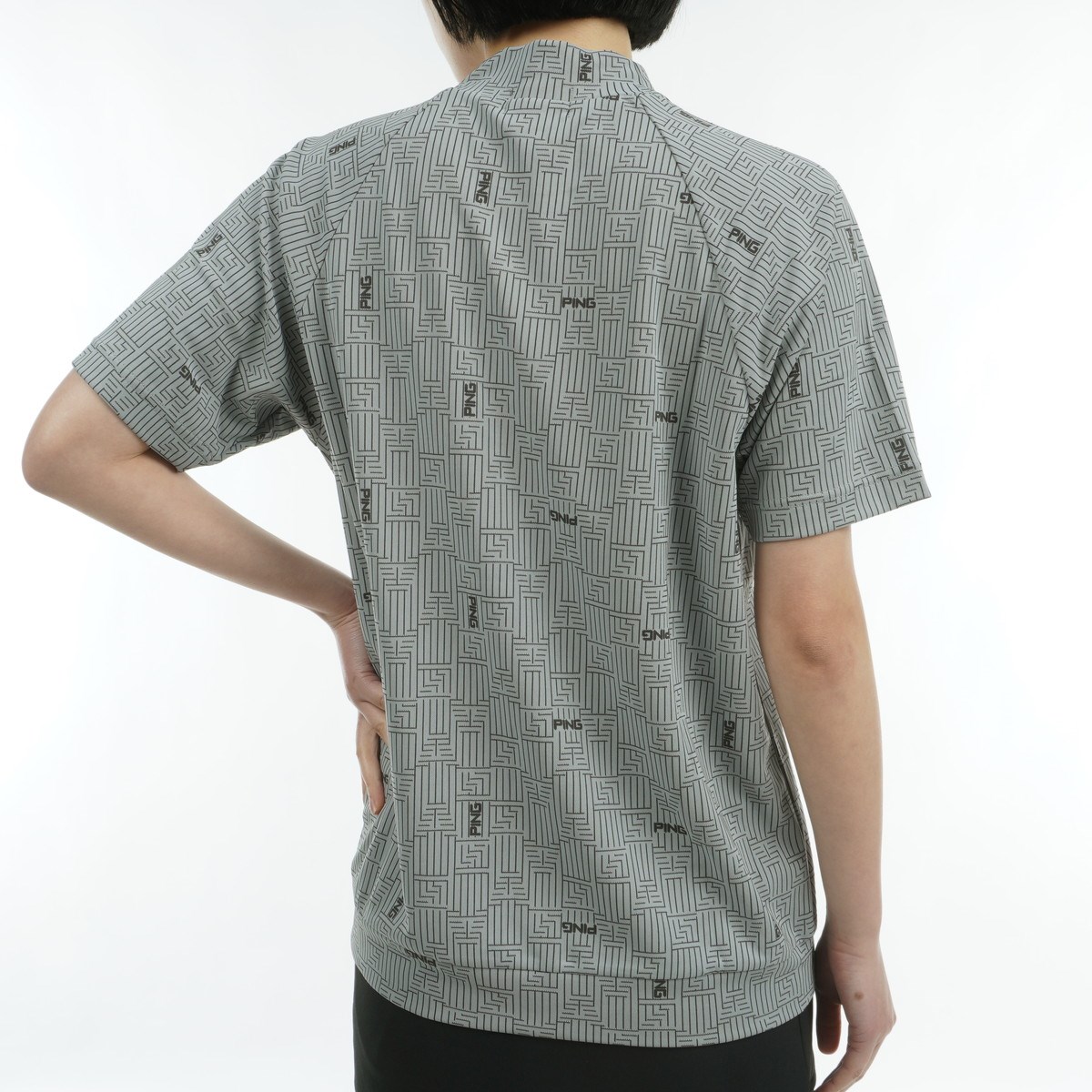 ピン PING AZモノグラムジャカードハイネック半袖シャツ L グレー 020 レディス