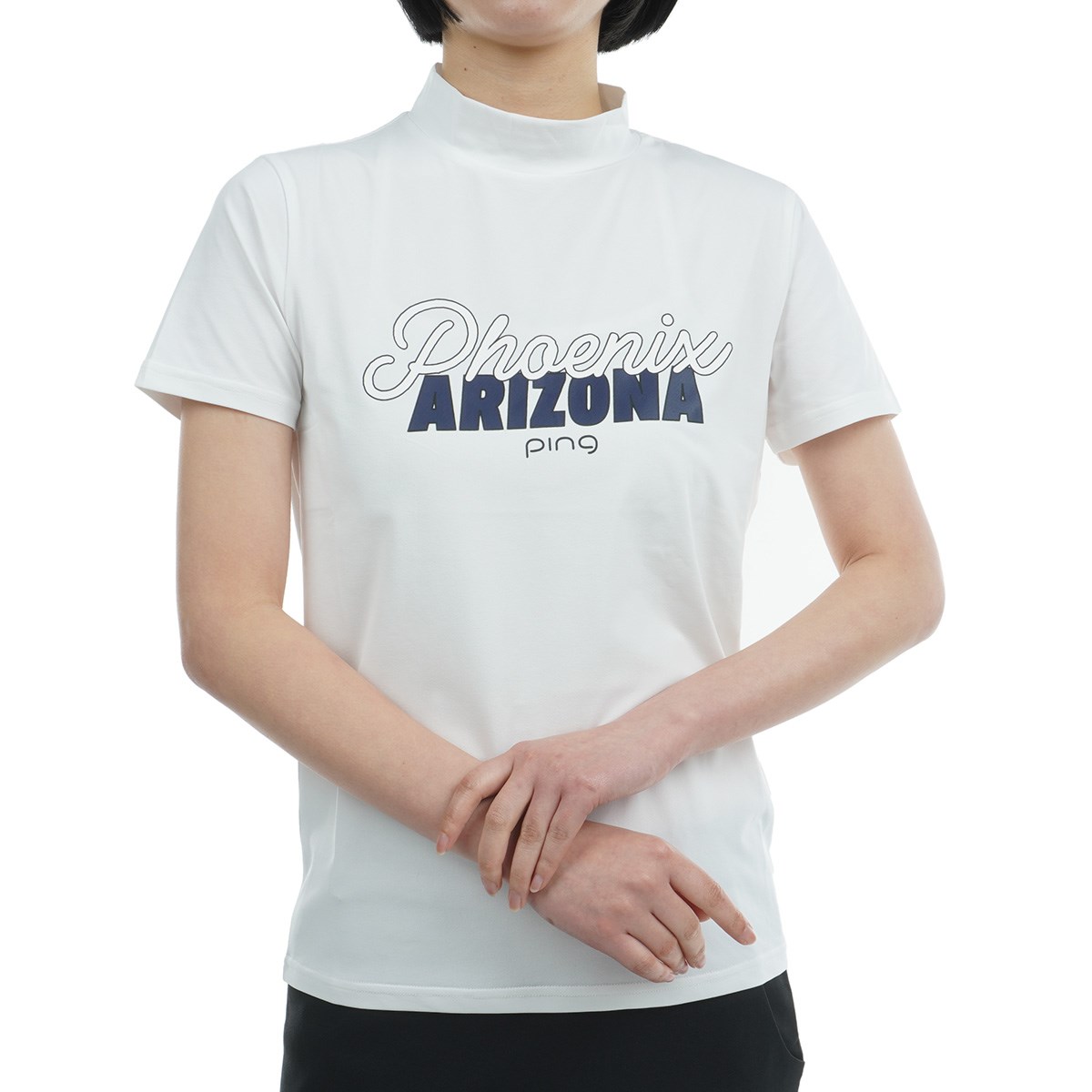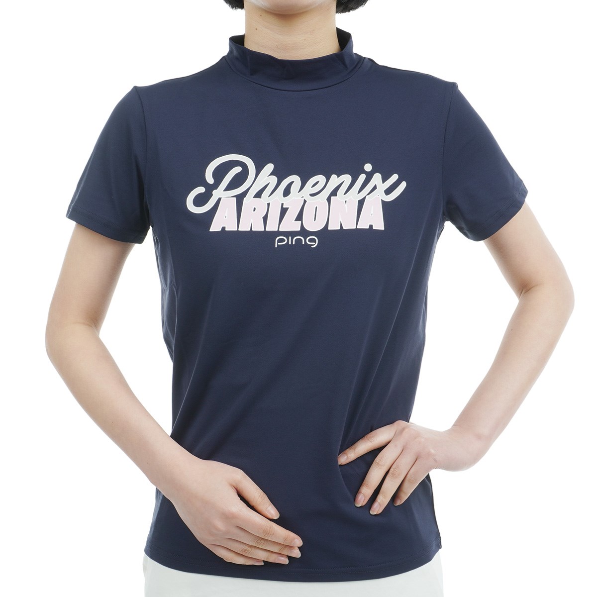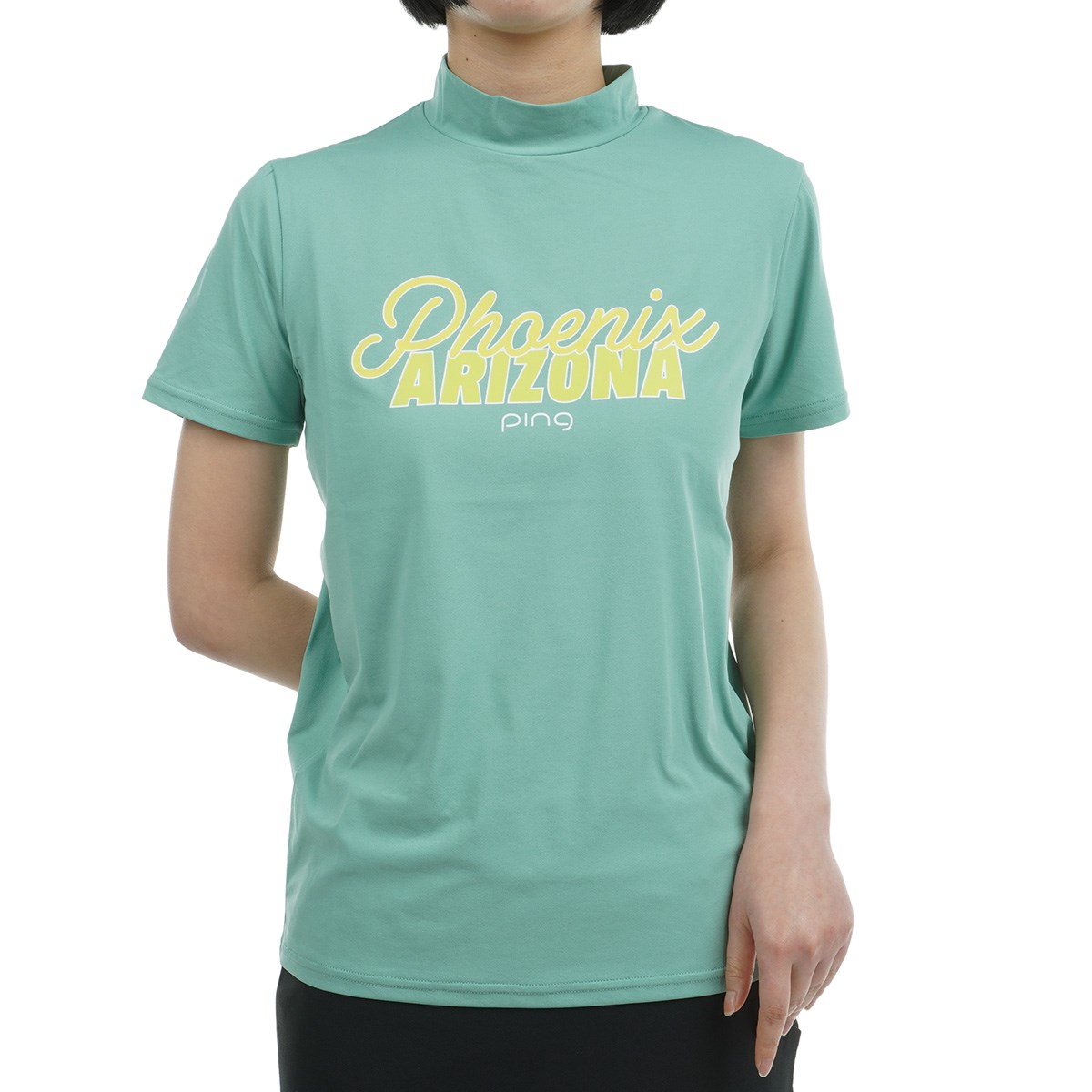 PINGのPOPなロゴモチーフをあしらってTシャツ感覚で気軽に使える、UVプリント天竺半袖ハイネックカットソー。