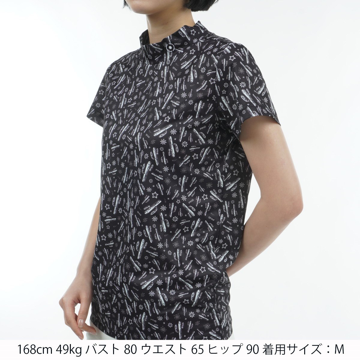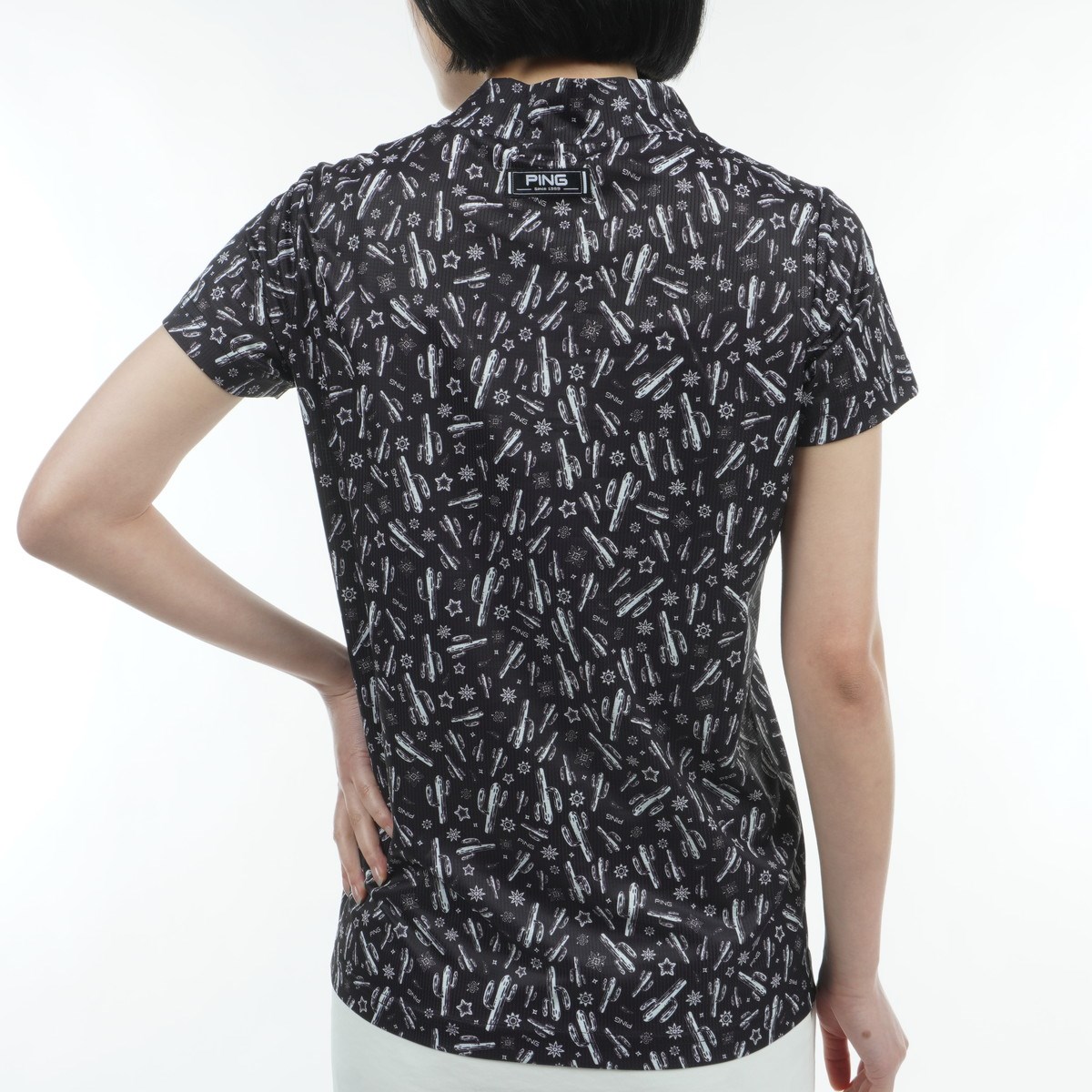 ピン PING 10色総柄サラマックス ハイネック半袖シャツ M ブラック 010 レディス