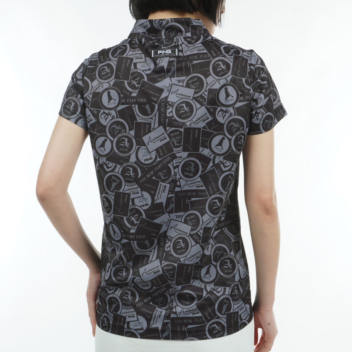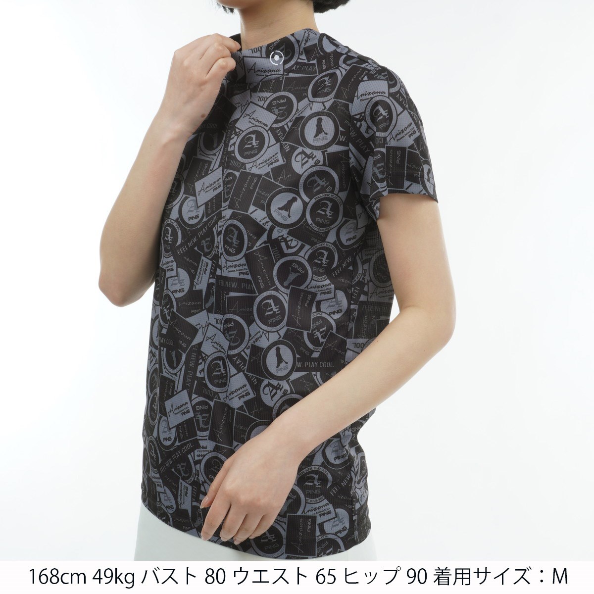 ピン PING 10色総柄サラマックス ハイネック半袖シャツ L グレー 020 レディス