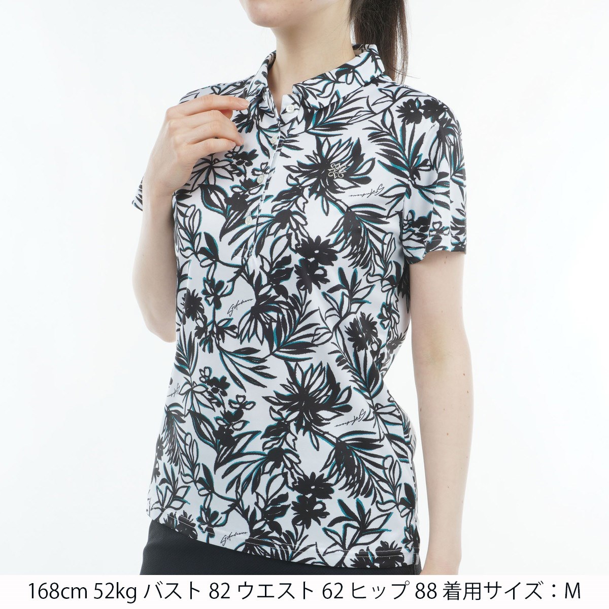 セント・アンドリュース St ANDREWS COOLMAX ボタニカルプリント半袖ポロシャツ M ホワイト 030 レディス