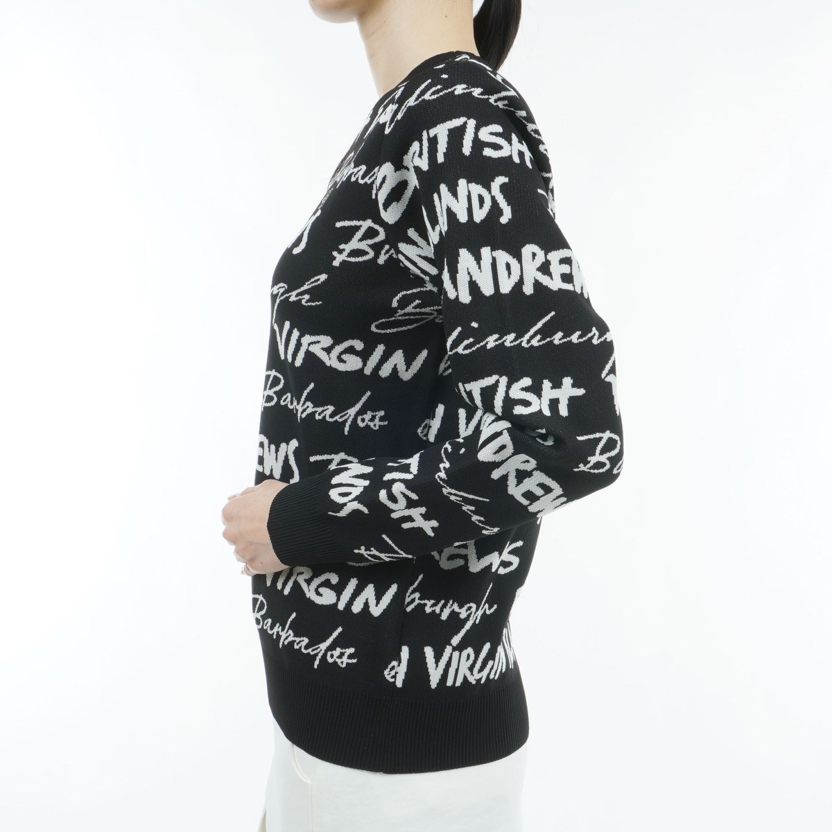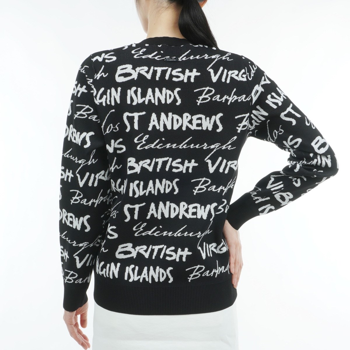 セント・アンドリュース St ANDREWS ハンドライティングジャカード プルオーバーセーター S ブラック 010 レディス