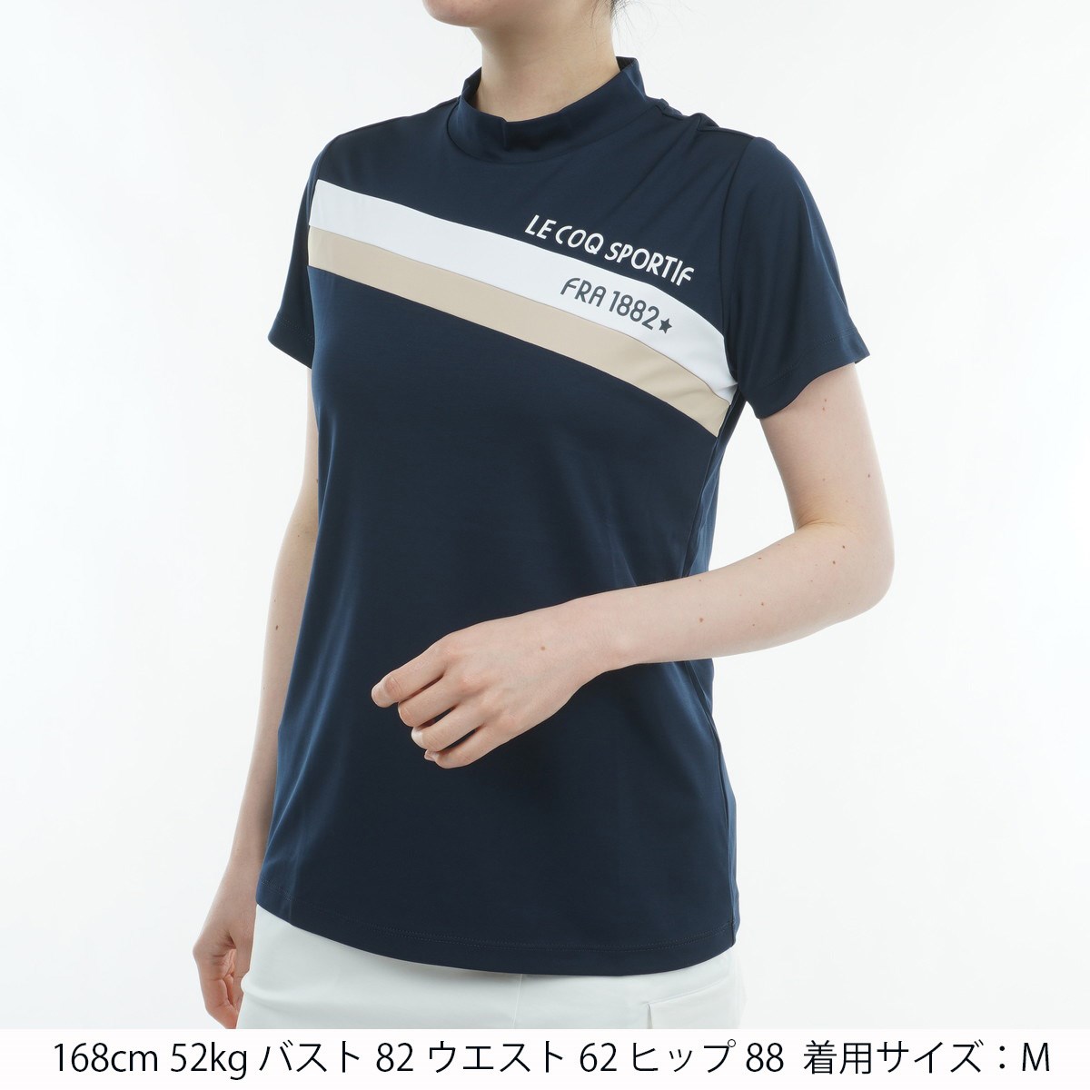 ルコックスポルティフ ゴルフ Le coq sportif GOLF ストレッチフォーサー ラインデザイン半袖シャツ M ネイビー 00 レディス