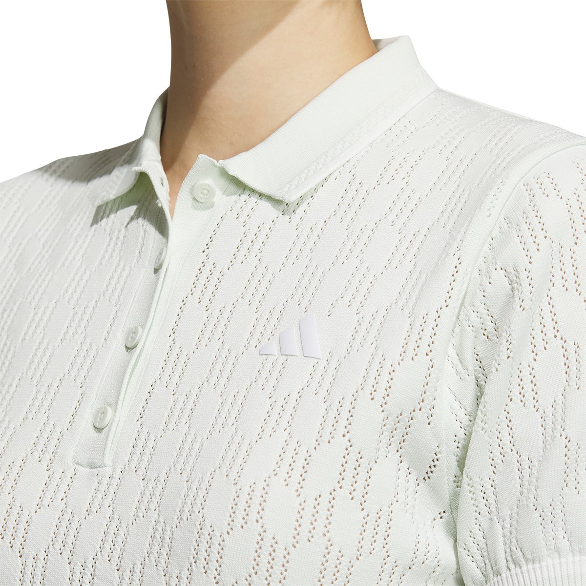 ジャカードパターンの設計により、セーターアイテムの運動性能を向上させたPRIMEKNITの半袖ポロシャツ。