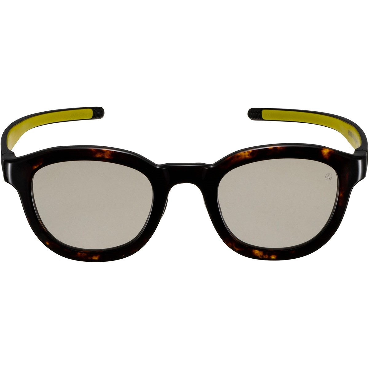 深すぎない天地幅のレンズシェイプでスポーティな印象を残しながらも分厚いフロントデザインはインパクトも十分。