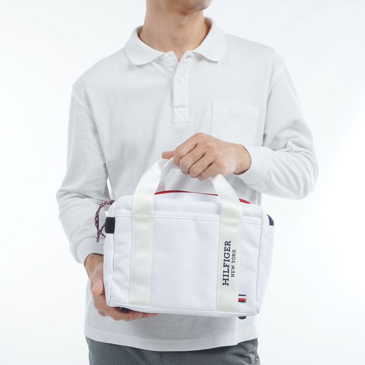 正面にはHILFIGERロゴを配置し、シグネチャーストライプのピスネームがアクセントになったシンプルで使いやすいデザイン。