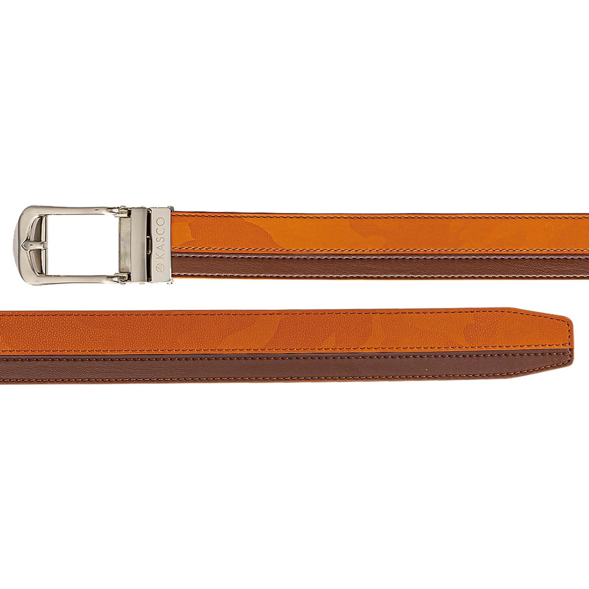 カモ柄と無地の切り返しが特徴のベルト。