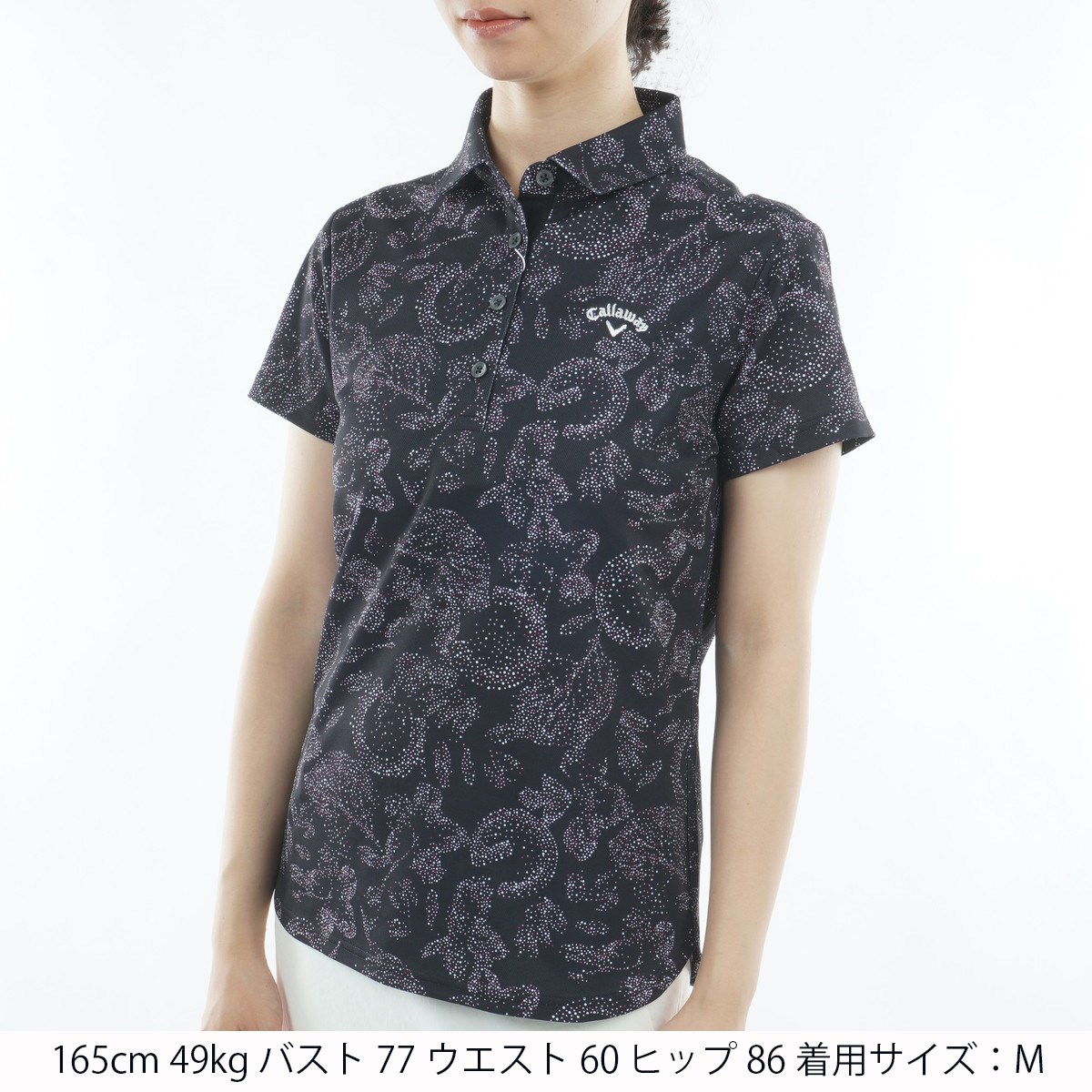キャロウェイゴルフ Callaway Golf ボタニカルプリント 鹿の子半袖ポロシャツ S ブラック 1011 レディス