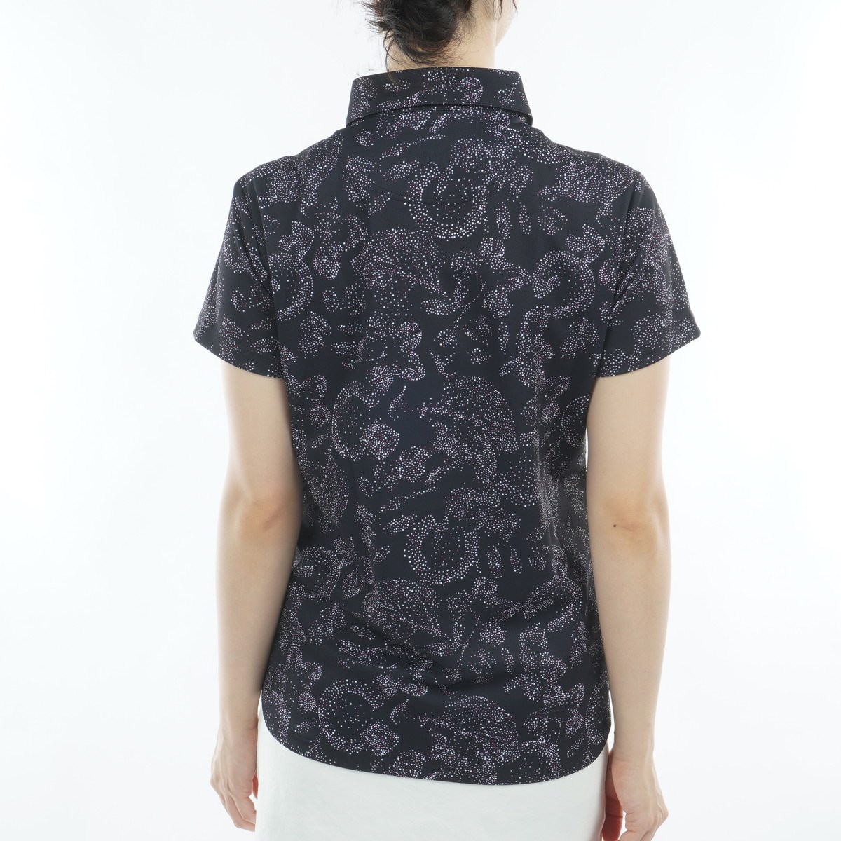 ドットでロゴやボタニカルを表現した華やかなプリント半袖ポロシャツです。